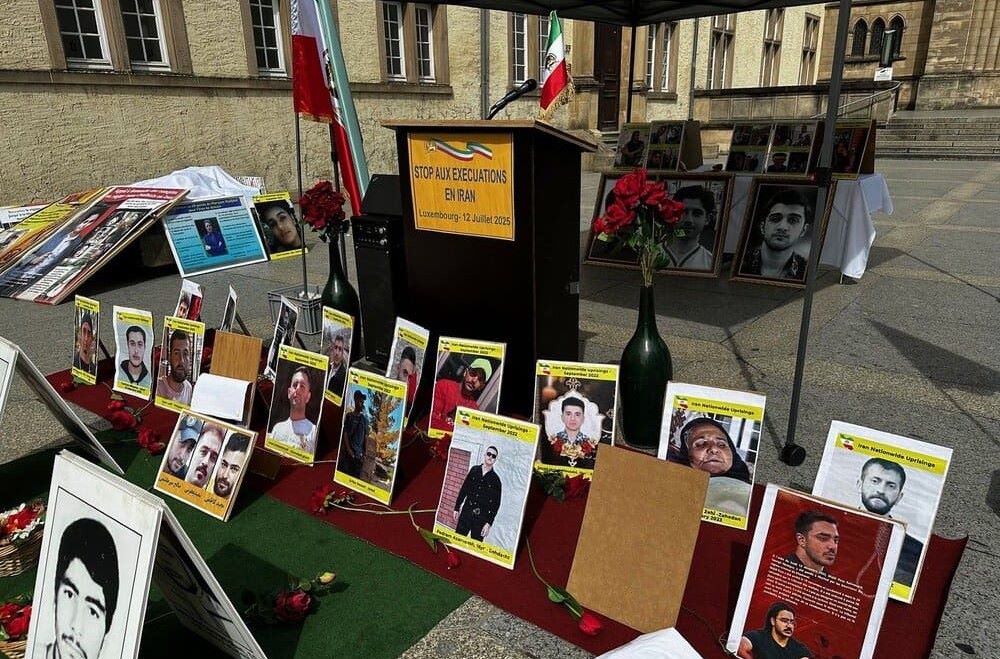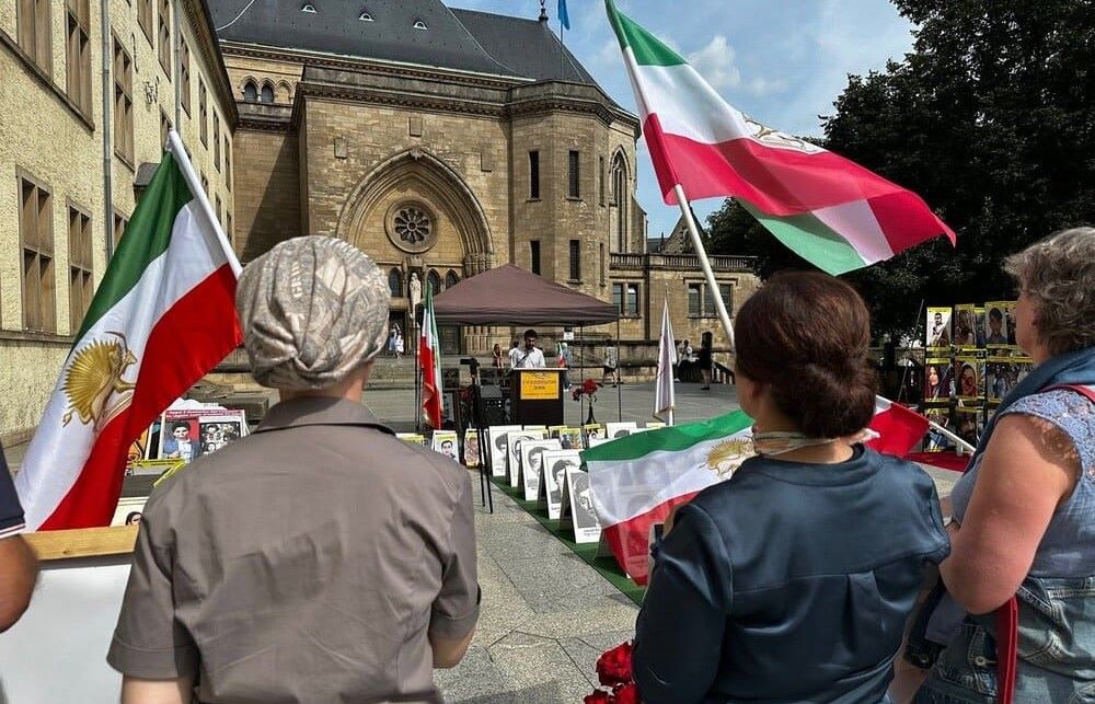 Luxembourg, July 12, 2025 – A rally in front of the city’s cathedral gathered supporters of the Iranian Resistance (NCRI and PMOI) who condemned the wave of executions and severe human rights abuses committed by Iran’s ruling regime. Protesters emphasized that neither foreign military intervention nor Western appeasement can solve the Iranian crisis. Their core message was clear: the only solution is the overthrow of the mullahs’ regime by the Iranian people and their organized resistance.