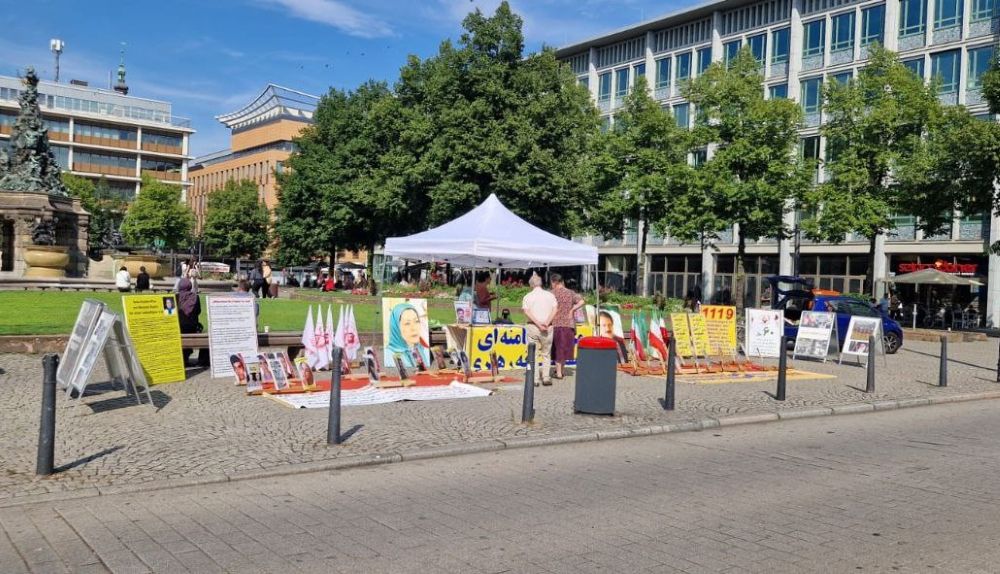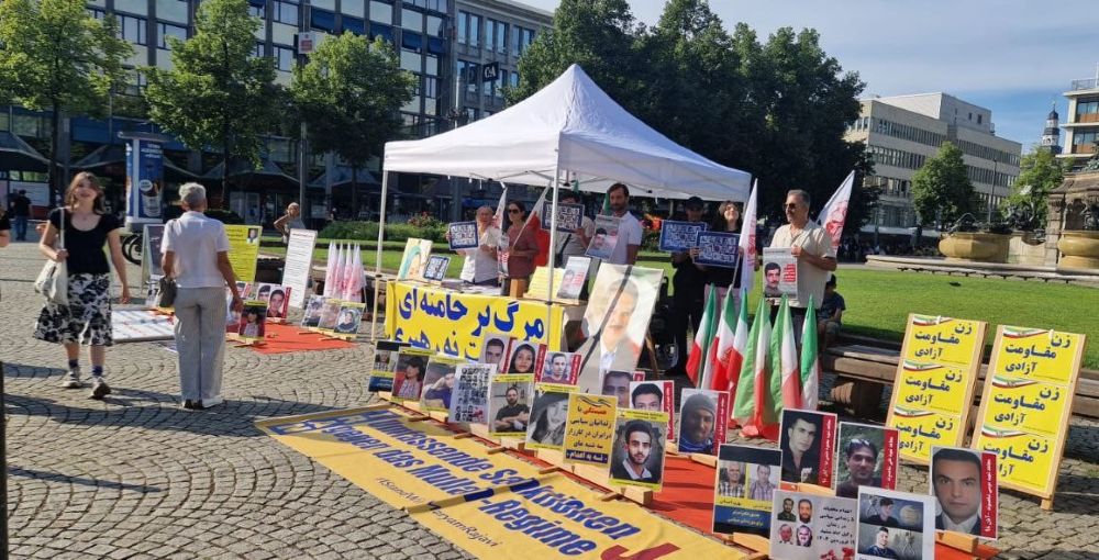 Mannheim, Germany – July 18, 2025: Supporters of the People’s Mojahedin Organization of Iran (PMOI/MEK) rallied and organized an exhibition in Mannheim to highlight the escalating human rights crisis in Iran.