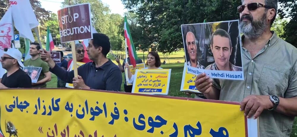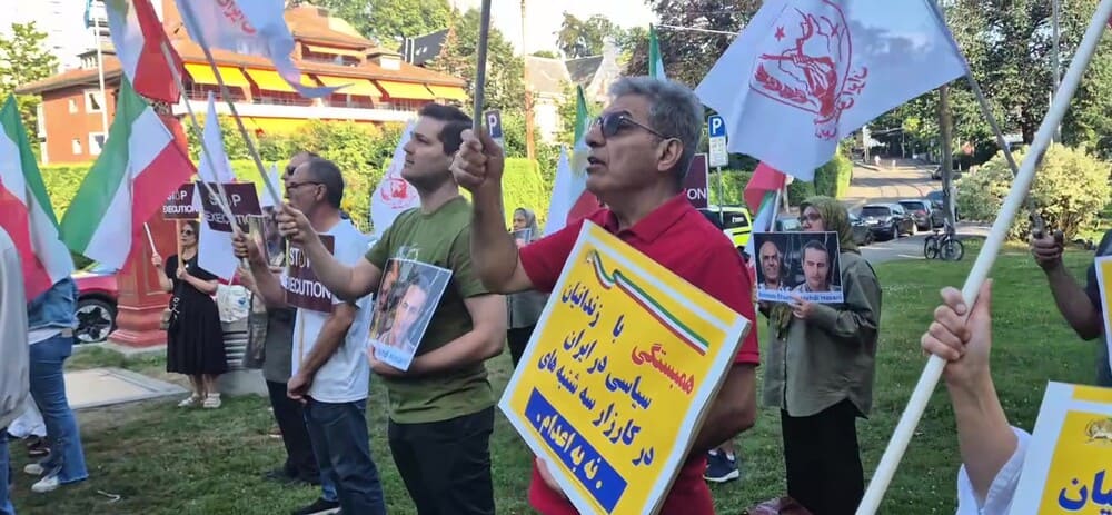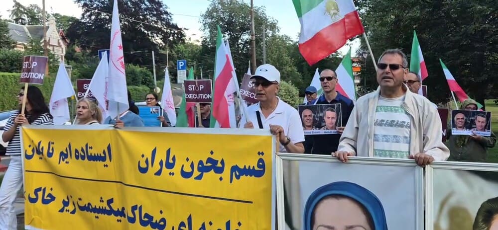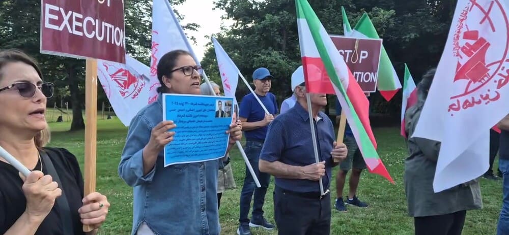 For the second consecutive day, freedom-loving Iranians gathered outside the Iranian regime’s embassy in Oslo, voicing outrage over the recent execution of two political prisoners—Mehdi Hassani and Behrouz Ehsani—both members of the People’s Mojahedin Organization of Iran (PMOI/MEK).