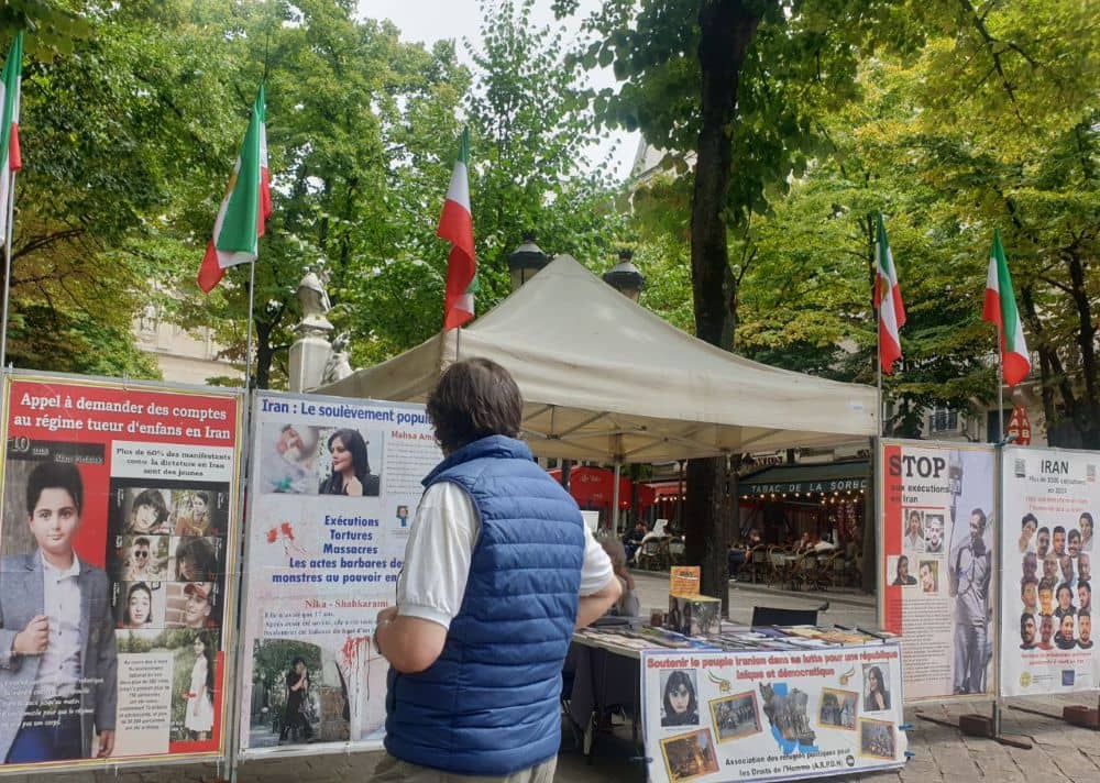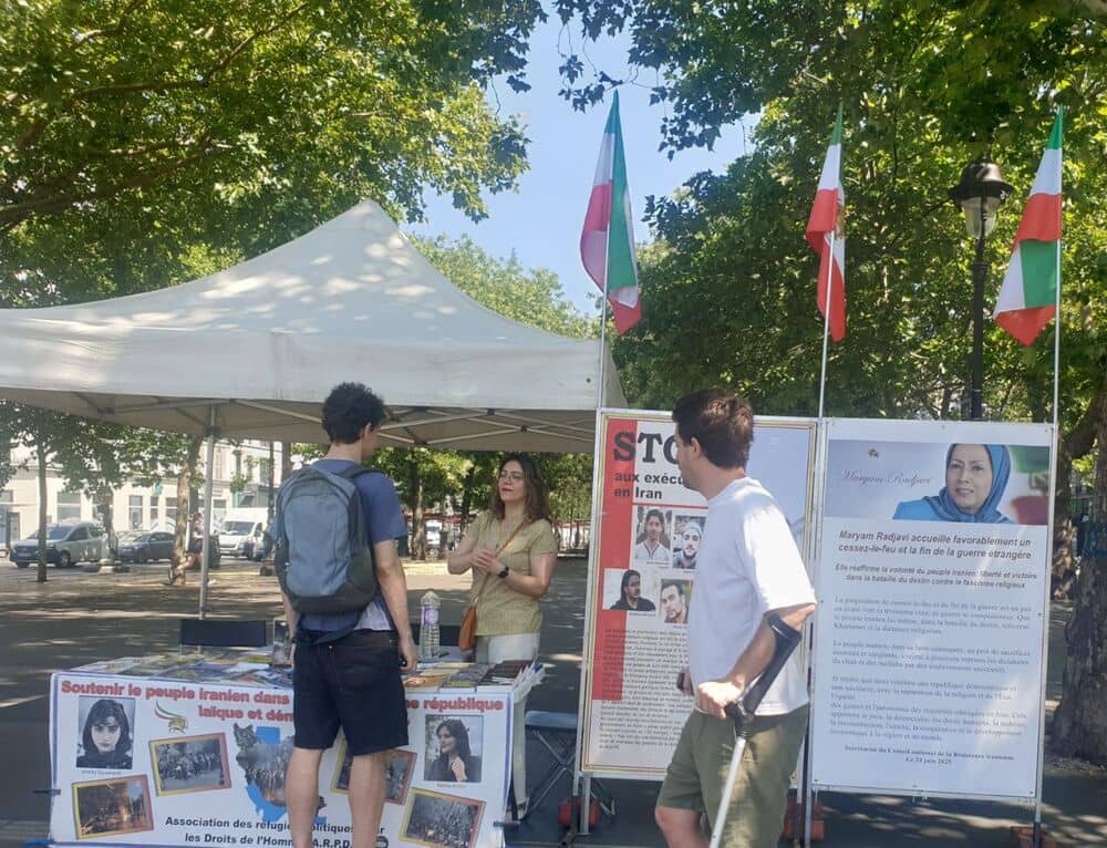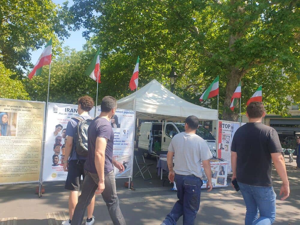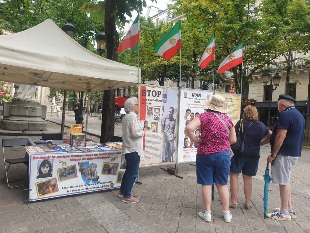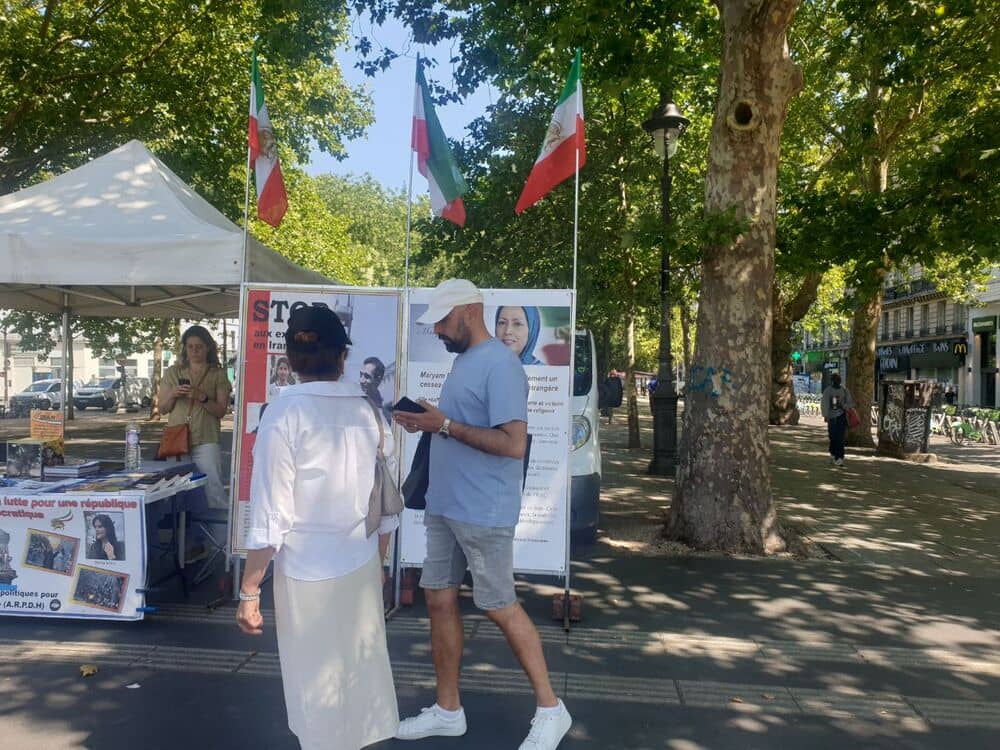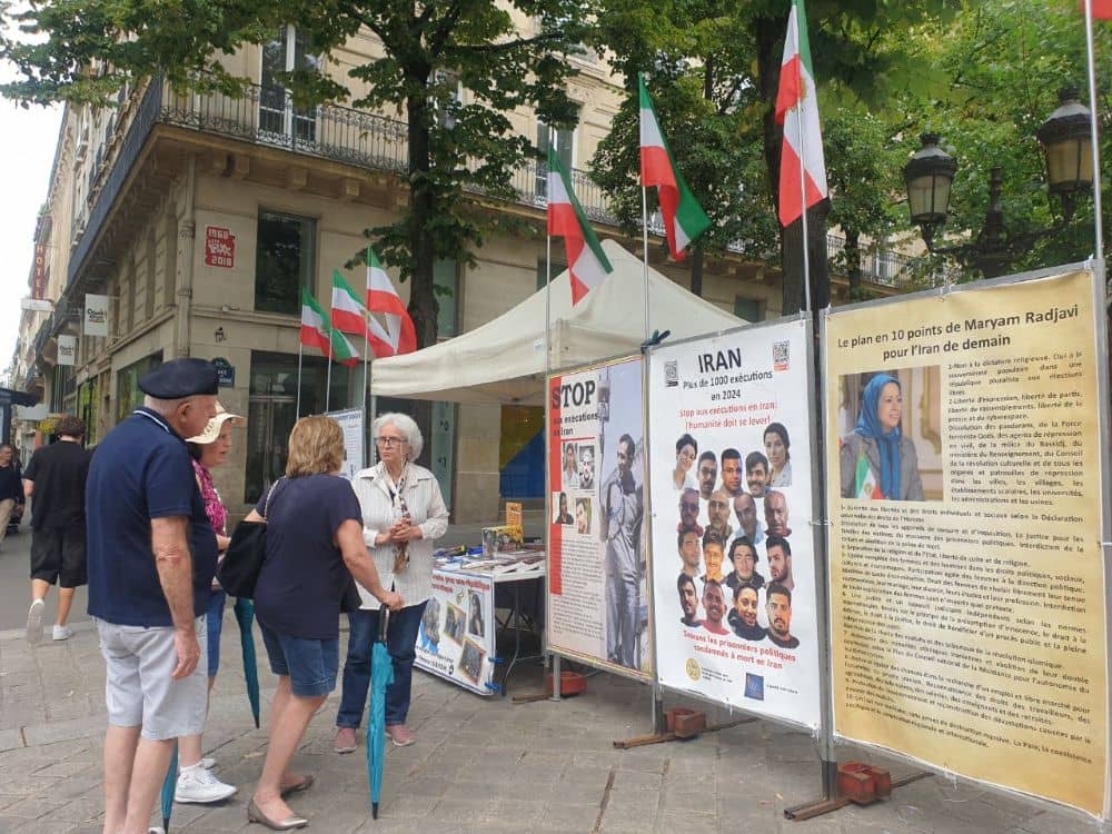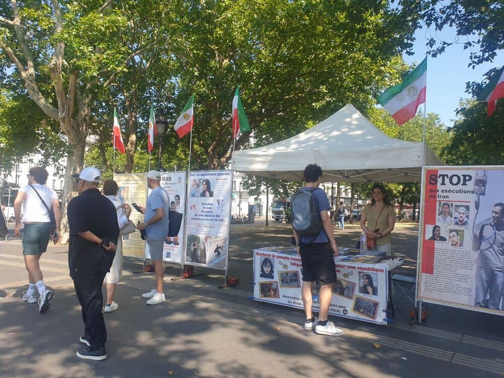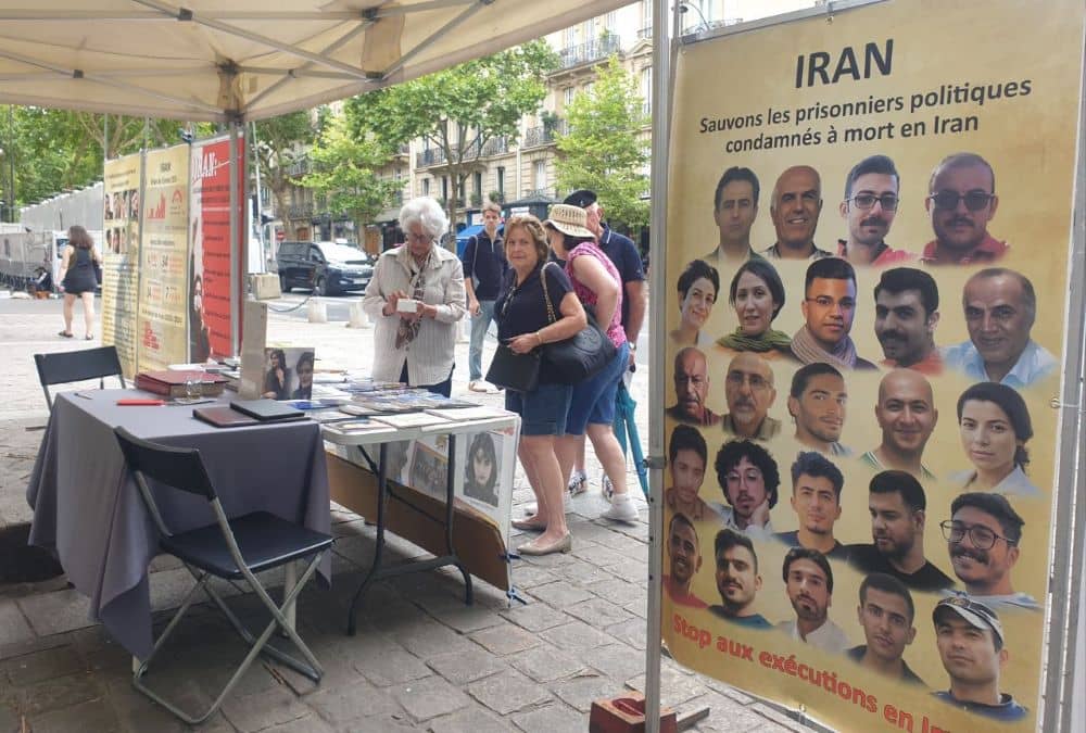 Exhibition in Paris by Iranian resistance supporters exposing human rights abuses and protesting executions by the mullahs’ regime, held July 17-18, 2025. Photo from July 17.