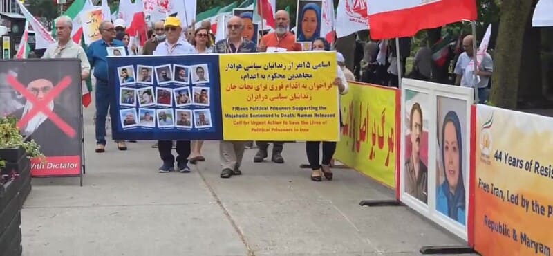 Toronto, Canada – July 19, 2025 – Supporters of the People’s Mojahedin Organization of Iran (PMOI/MEK) held a rally to condemn the wave of death sentences and intensified repression targeting political prisoners by Iran’s regime. Organizers demanded the immediate cancellation of death sentences and the unconditional release of all political prisoners.
