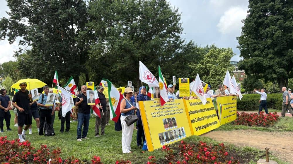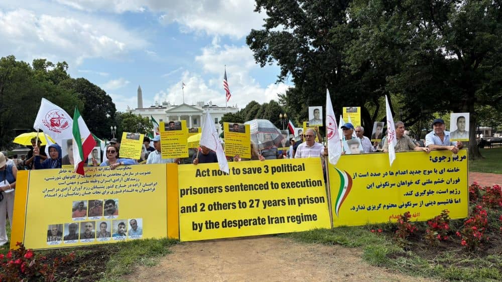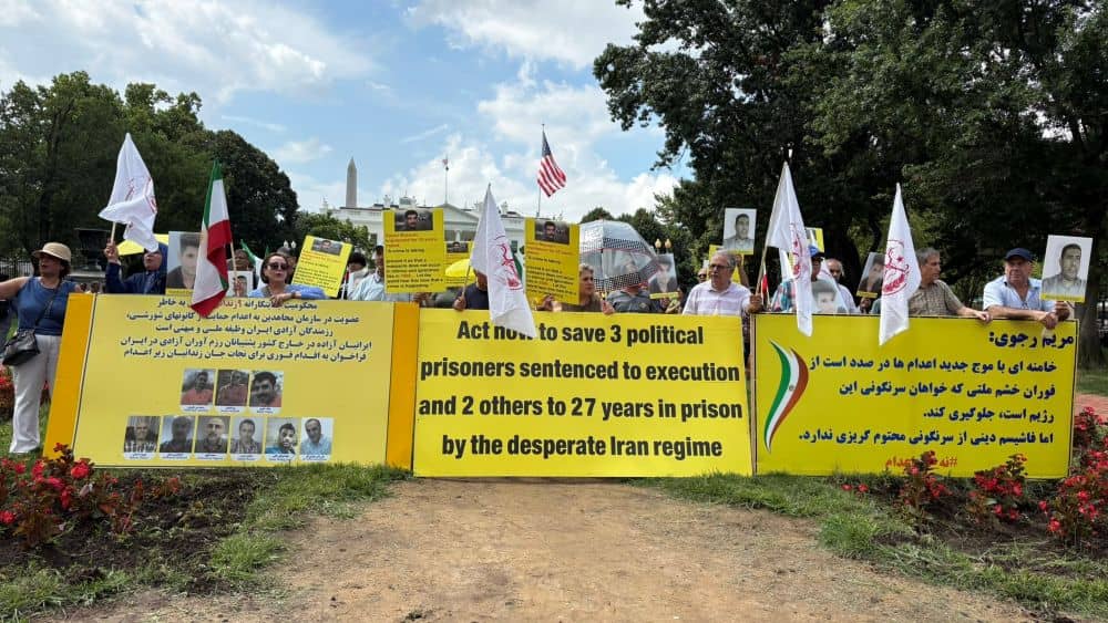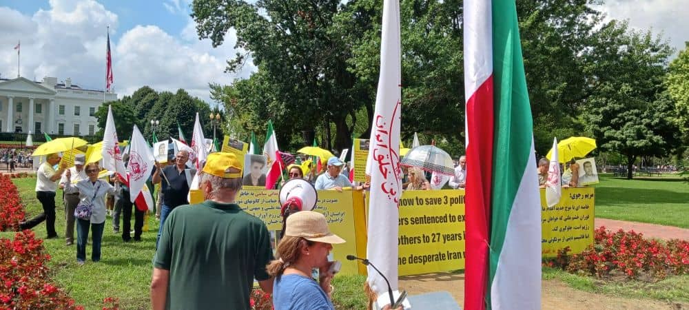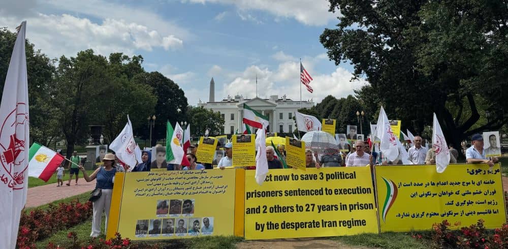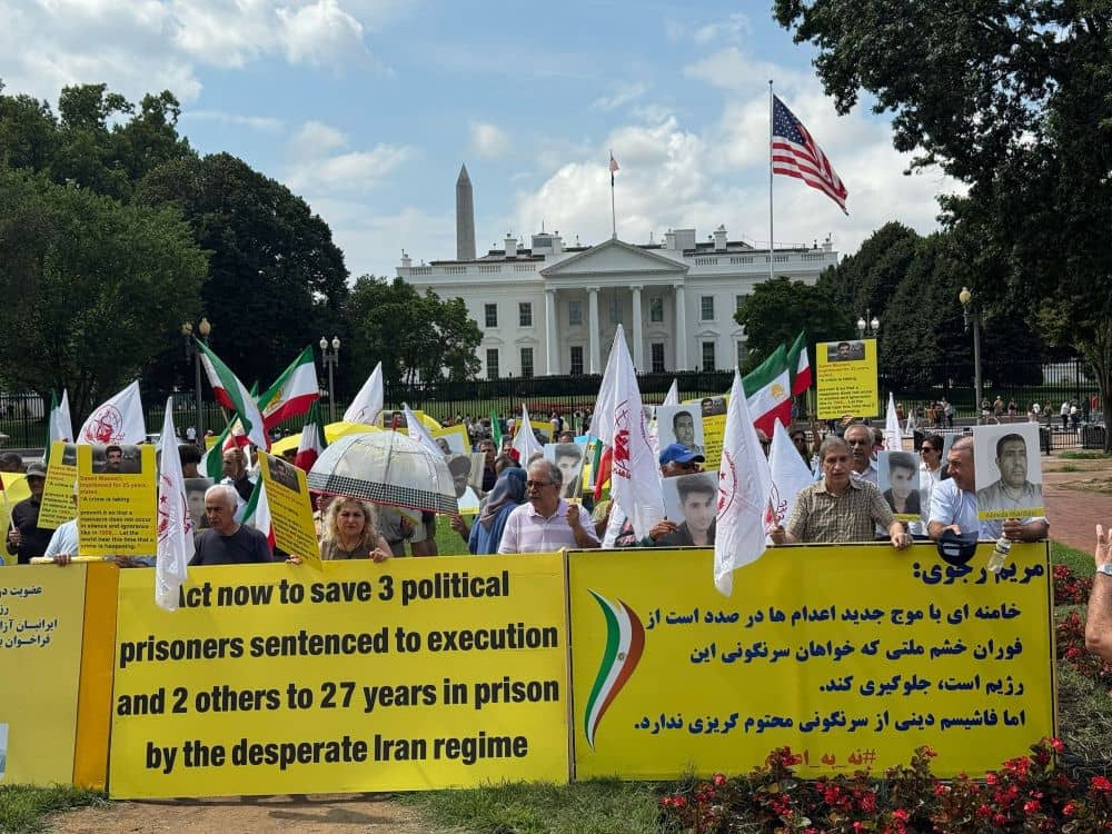 Washington, DC — July 19, 2025: Members of the Iranian American community and supporters of the Iranian Resistance held a rally in front of the White House on July 19, 2025, to protest the Iranian regime’s rising wave of executions and repression of political prisoners. Organized by the Organization of Iranian American Communities (OIAC), the demonstration highlighted the regime’s systematic human rights abuses, including the ongoing persecution of supporters of the People’s Mojahedin Organization of Iran (PMOI/MEK). Protesters called for the immediate abolition of the death penalty and the release of all political prisoners.