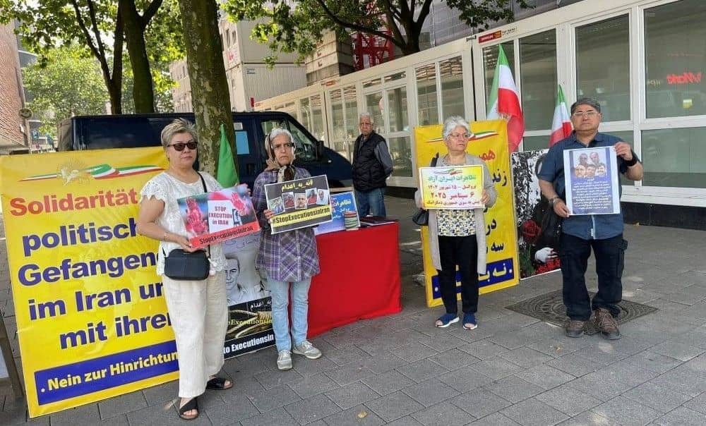 Hamburg, Germany – August 11, 2025 – Supporters of the People’s Mojahedin Organization of Iran (PMOI/MEK) rallied to protest the looming execution of five political prisoners in Iran: Vahid Bani-Amerian, Pouya Ghobadi, Shahrokh Daneshvarkar, Mohammad Taghavi, and Babak Alipour. The Iranian regime has moved them to Ghezel Hesar Prison, a known execution site, putting their lives at immediate risk.