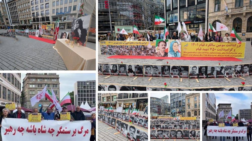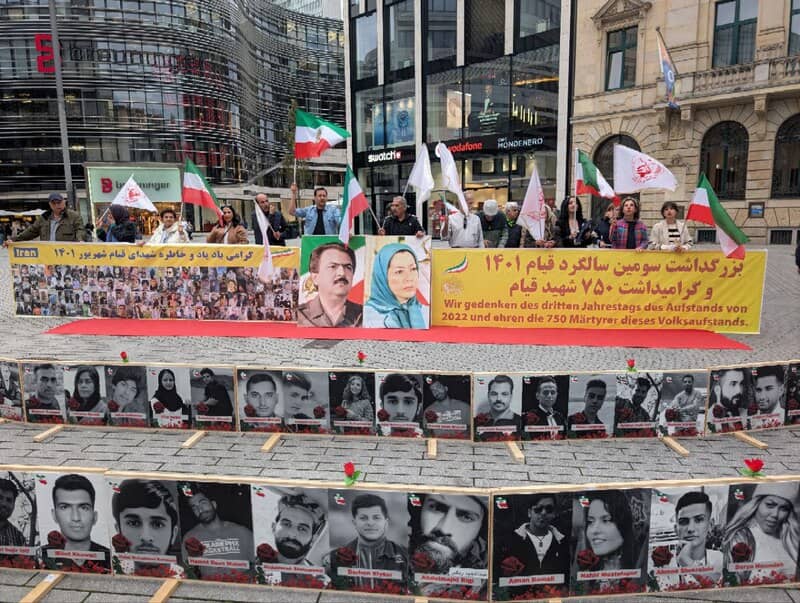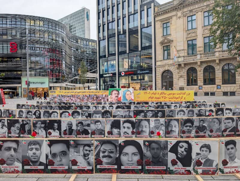 The rallies displayed photos honoring the martyrs of the 2022 uprising and commemorated their sacrifice for freedom. Through placards, banners, and collective chants, participants demanded a firm international policy against Iran’s religious dictatorship. They also condemned ongoing appeasement toward the regime, which continues to oppress the Iranian people—especially women and youth.