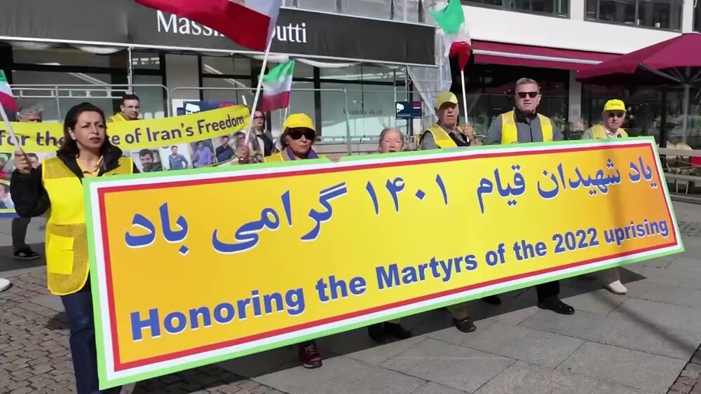 The rally displayed photos honoring the martyrs of the 2022 uprising and commemorated their sacrifice for freedom. Through placards, banners, and collective chants, participants demanded a firm international policy against Iran’s religious dictatorship. They also condemned ongoing appeasement toward the regime, which continues to oppress the Iranian people—especially women and youth.