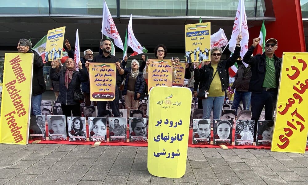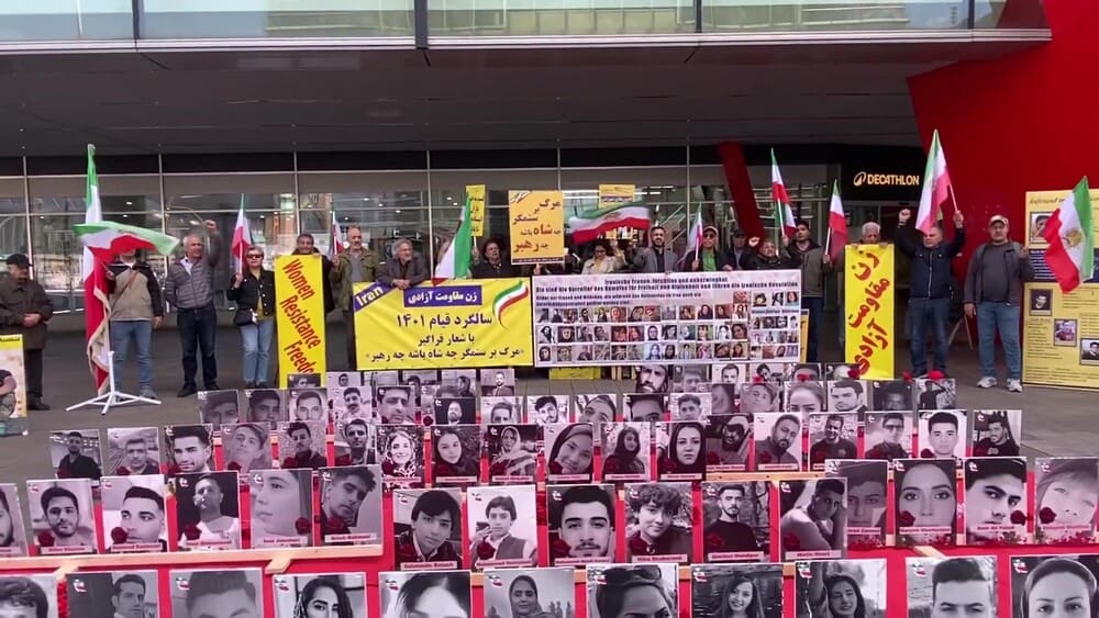 The rally displayed photos honoring the martyrs of the 2022 uprising and commemorated their sacrifice for freedom. Through placards, banners, and collective chants, participants demanded a firm international policy against Iran’s religious dictatorship. They also condemned ongoing appeasement toward the regime, which continues to oppress the Iranian people—especially women and youth.