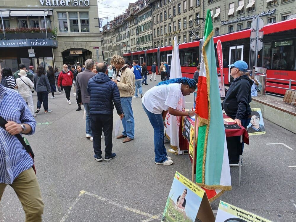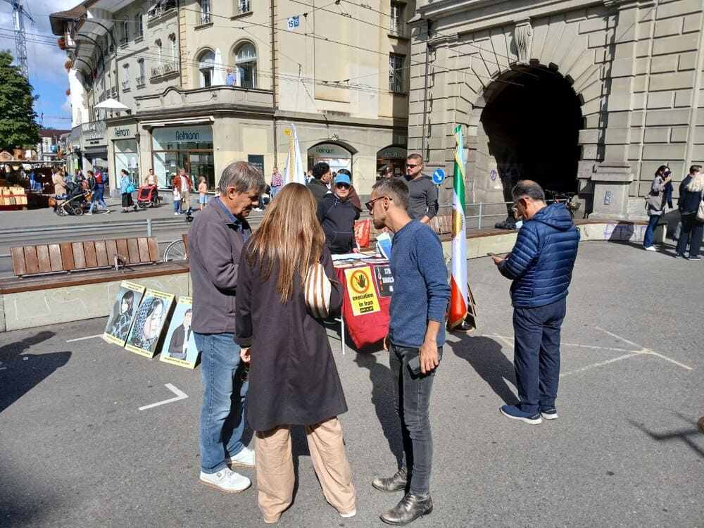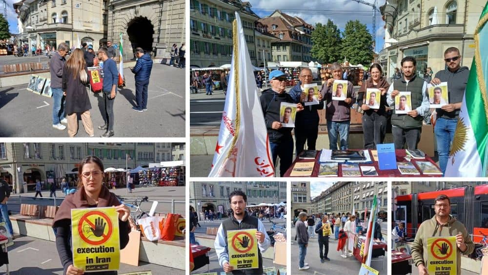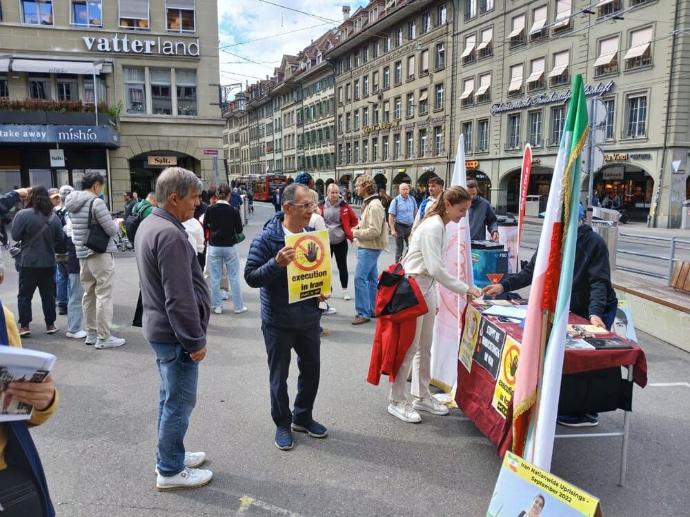 Bern, Switzerland – September 11, 2025 – Supporters of the People’s Mojahedin Organization of Iran (PMOI/MEK) organized an exhibition in Bern to protest the Iranian regime’s growing use of the death penalty, particularly against political prisoners. The exhibition also expressed solidarity with the “No to Execution Tuesdays” campaign.