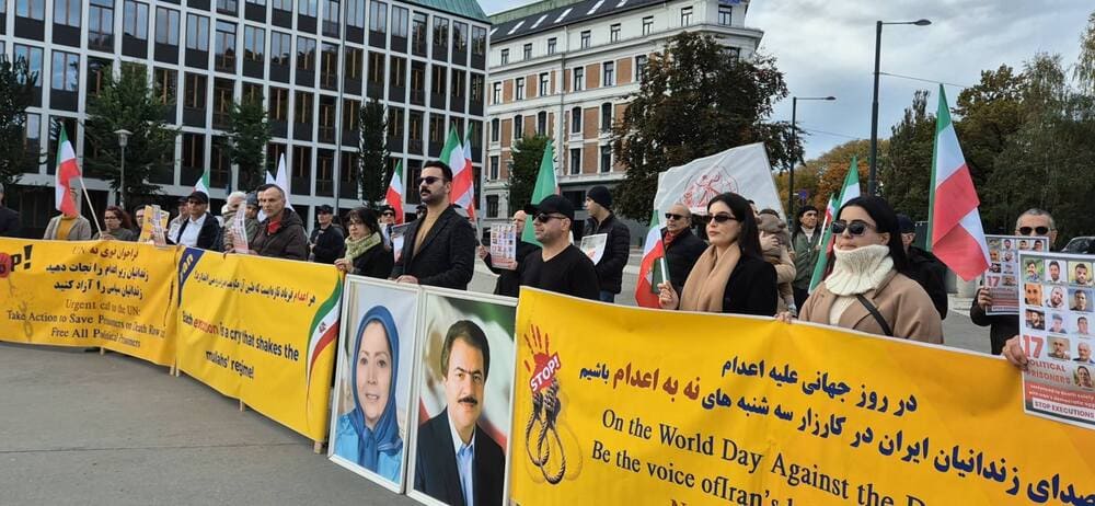 Oslo, Norway – October 11, 2025 — On the second day of a two-day rally marking the World Day Against the Death Penalty, supporters of the People’s Mojahedin Organization of Iran (PMOI/MEK) once again gathered outside the Norwegian Ministry of Foreign Affairs. The demonstration and photo exhibition, which began on October 10, continued for a second day as freedom-loving Iranians renewed their call for justice, human rights, and an end to executions in Iran.