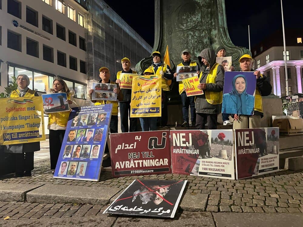 Gothenburg, Sweden – October 28, 2025 – Supporters of the People’s Mojahedin Organization of Iran (PMOI/MEK) gathered in Gothenburg to mark the 57th consecutive week of local participation in the global “No to Execution Tuesdays” campaign. The movement protests the Iranian regime’s escalating wave of executions and systematic repression.