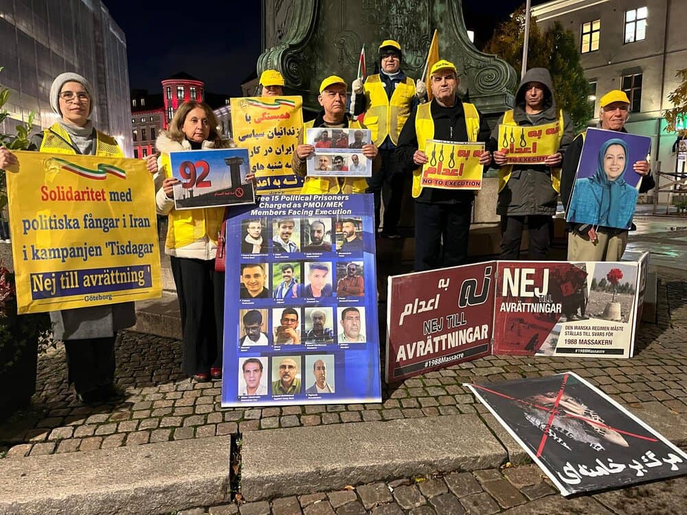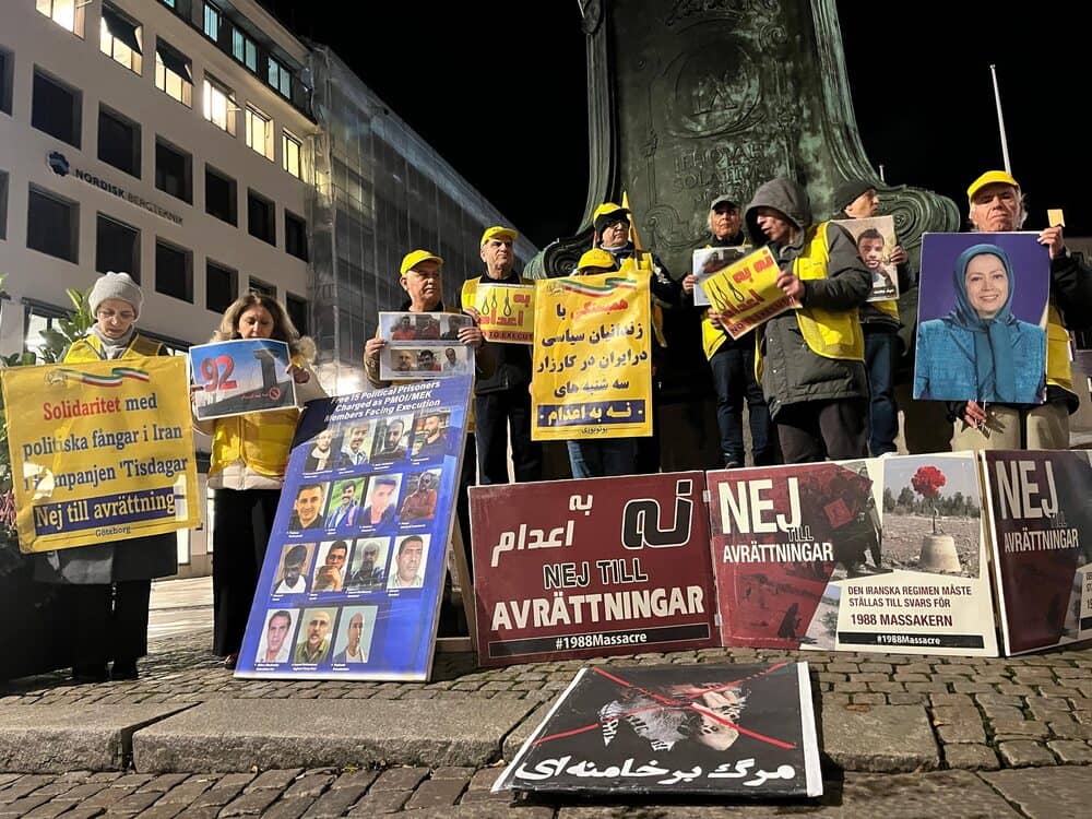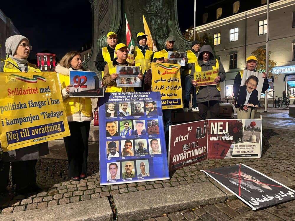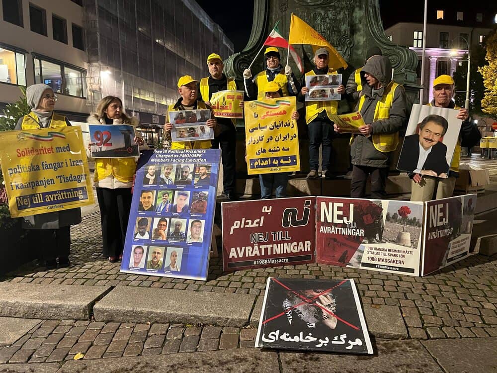 Gothenburg, Sweden – October 28, 2025 – Supporters of the People’s Mojahedin Organization of Iran (PMOI/MEK) gathered in Gothenburg to mark the 57th consecutive week of local participation in the global “No to Execution Tuesdays” campaign. The movement protests the Iranian regime’s escalating wave of executions and systematic repression.