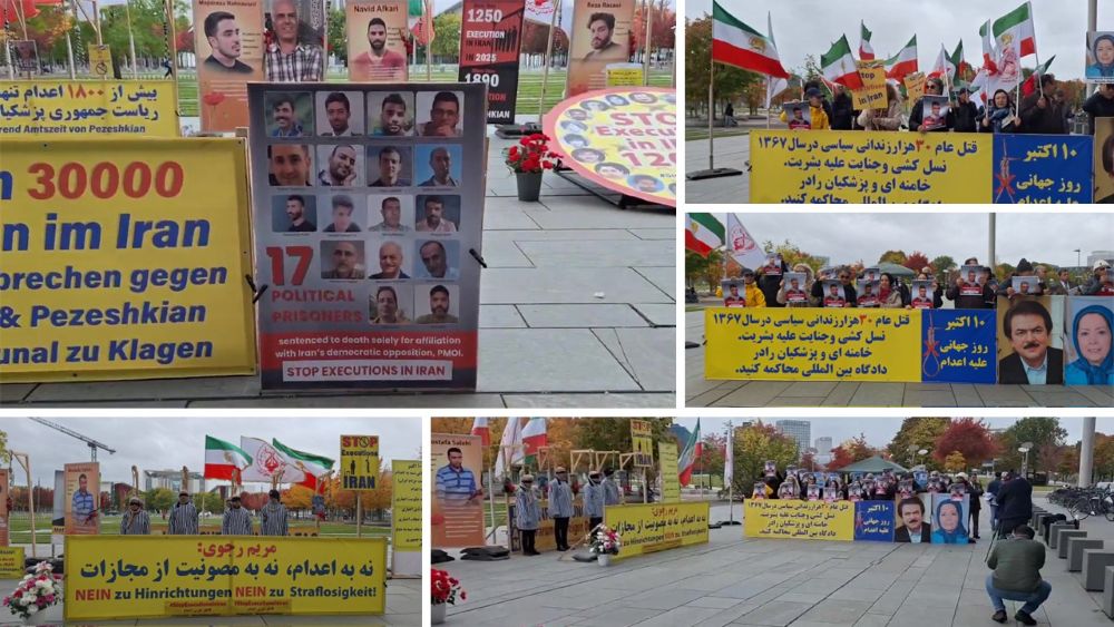 Berlin, Germany – October 10, 2025 — Supporters of the People’s Mojahedin Organization of Iran (PMOI/MEK) gathered in front of the Bundestag in Berlin to mark the World Day Against the Death Penalty. The demonstrators condemned the Iranian regime’s ongoing executions and called for the immediate abolition of the death penalty, the release of all political prisoners, and urgent international action to prevent imminent executions.