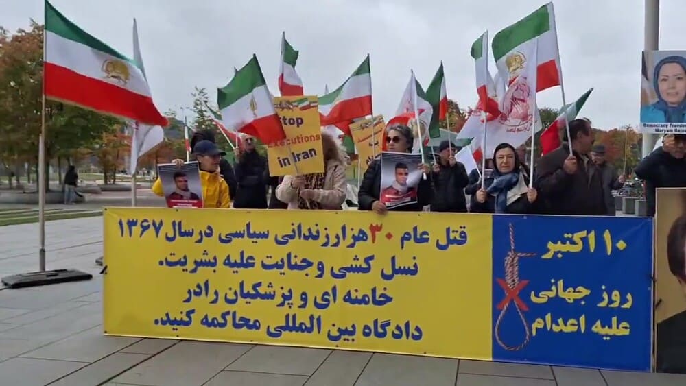 Protesters specifically called attention to political prisoners Mohammad Javad Vafaei-Sani and Ehsan Faridi, who face imminent death sentences, along with 15 other MEK supporters at risk of execution. Demonstrators urged the United Nations, the German government, and the international community to act immediately to protect these prisoners. They recalled the massacre of 30,000 political prisoners in the 1988 massacre in Iran by the clerical regime and, noting the continuation of executions in Iran, called for an end to the impunity of the regime’s leaders and agents and for their trial in an international court for crimes against humanity.