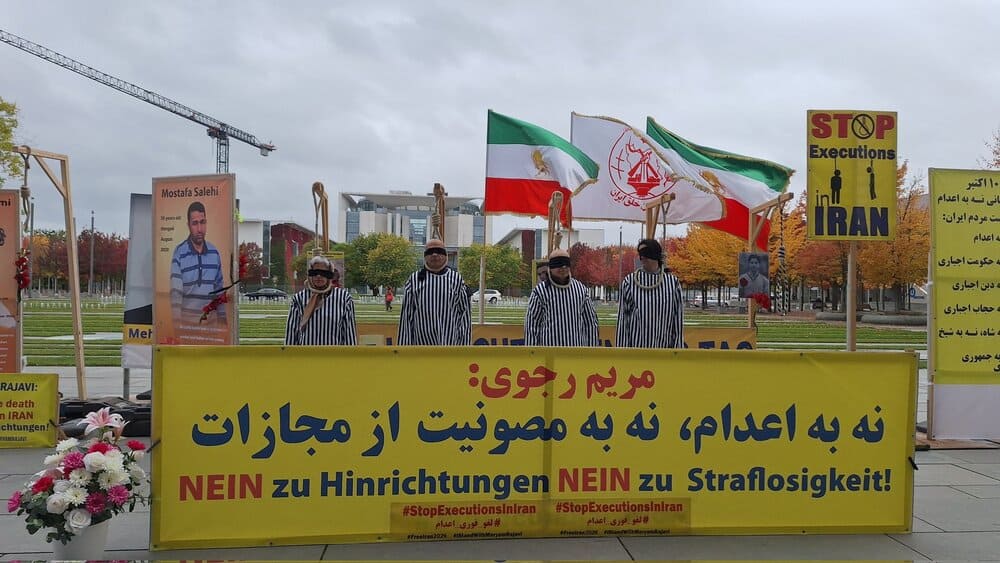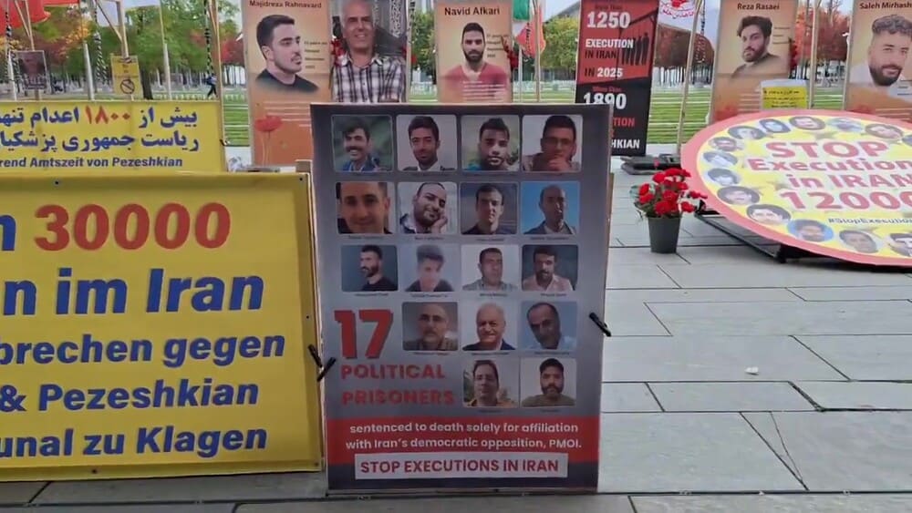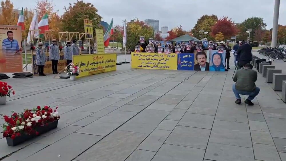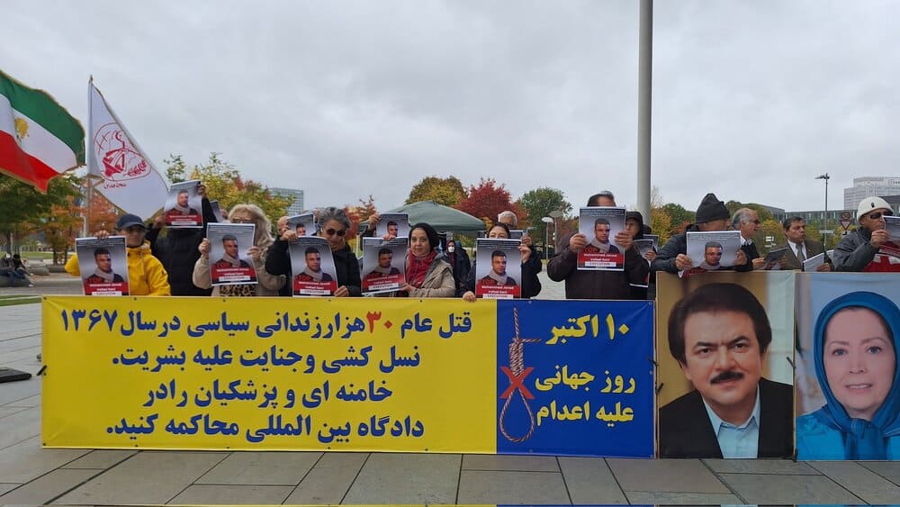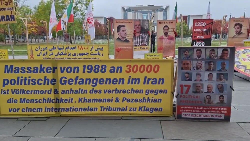 Protesters specifically called attention to political prisoners Mohammad Javad Vafaei-Sani and Ehsan Faridi, who face imminent death sentences, along with 15 other MEK supporters at risk of execution. Demonstrators urged the United Nations, the German government, and the international community to act immediately to protect these prisoners. They recalled the massacre of 30,000 political prisoners in the 1988 massacre in Iran by the clerical regime and, noting the continuation of executions in Iran, called for an end to the impunity of the regime’s leaders and agents and for their trial in an international court for crimes against humanity.