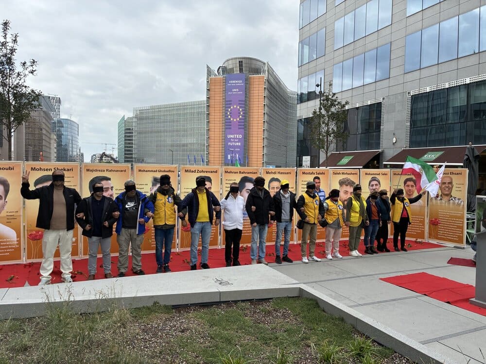 On October 10, 2025, supporters of the Iranian Resistance gathered in Brussels to protest executions in Iran. The event, held at Schuman Roundabout, coincided with the World Day Against the Death Penalty.