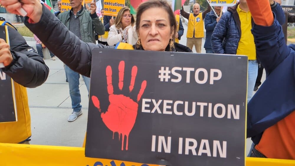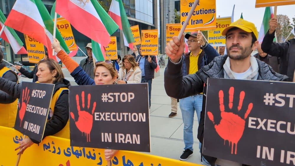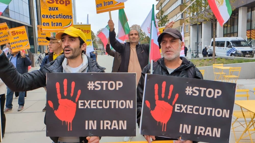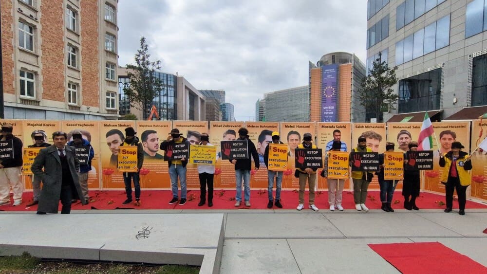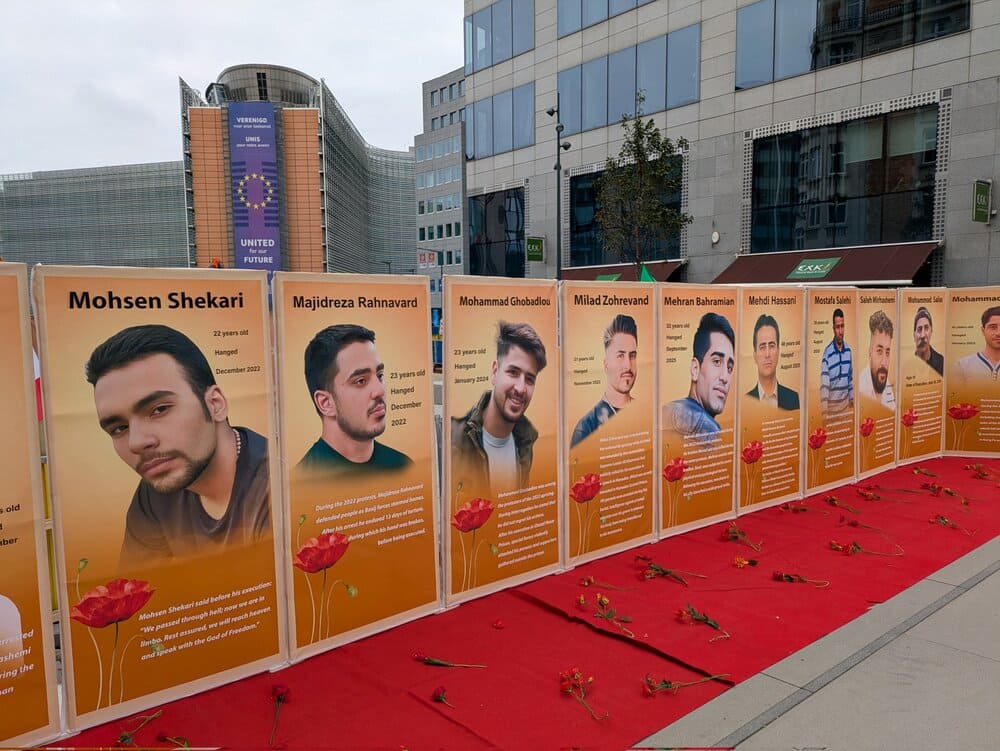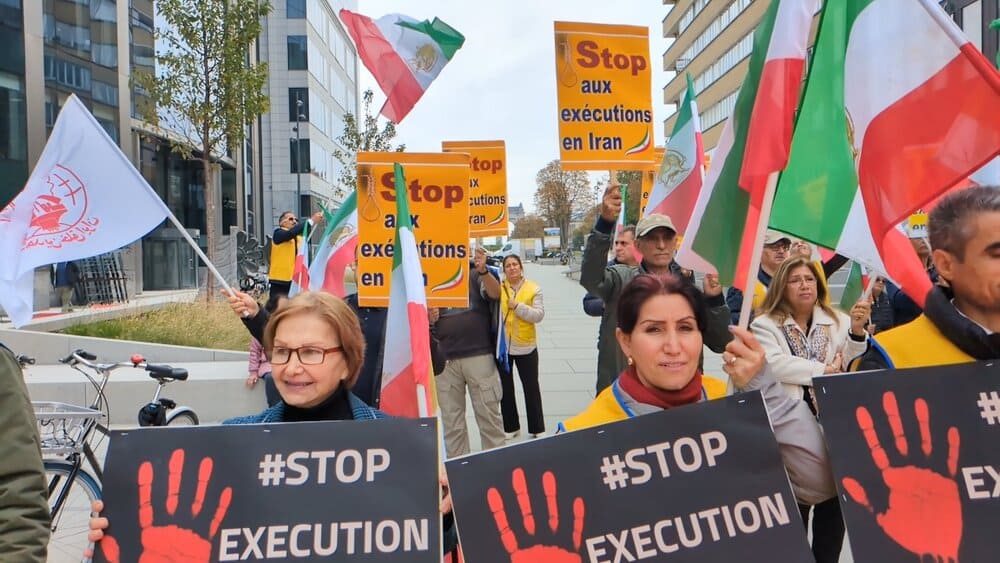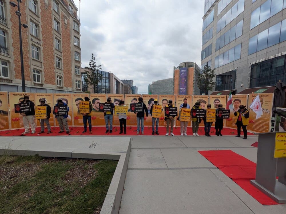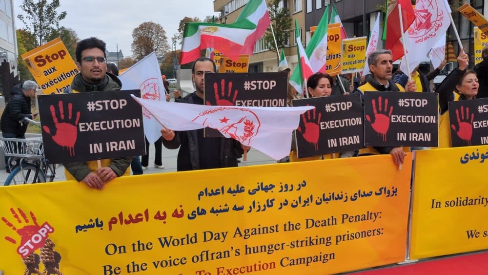 On October 10, 2025, supporters of the Iranian Resistance gathered in Brussels to protest executions in Iran. The event, held at Schuman Roundabout, coincided with the World Day Against the Death Penalty.