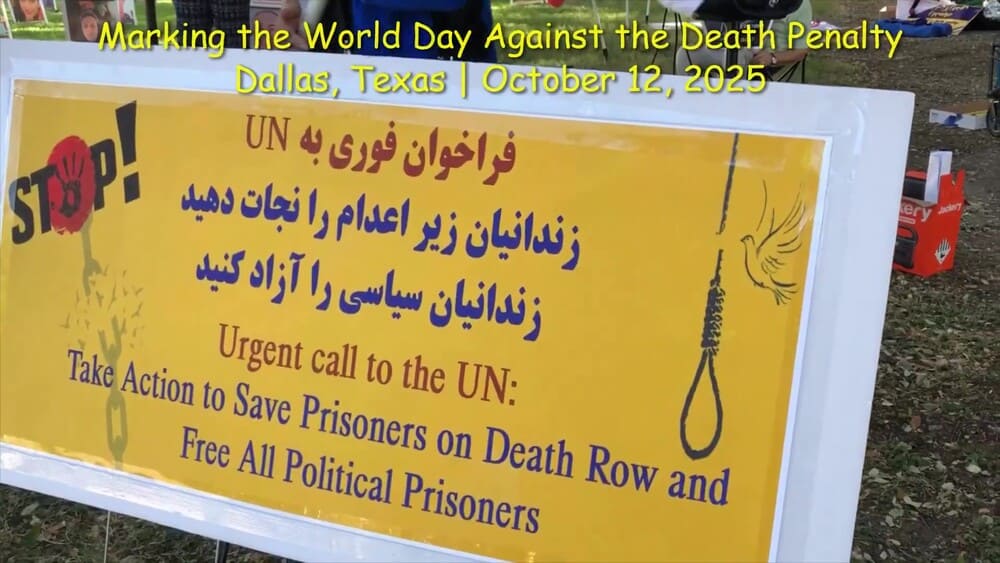 Dallas, Texas – October 12, 2025 — Supporters of the People’s Mojahedin Organization of Iran (PMOI/MEK) gathered in JFK Plaza to mark the World Day Against the Death Penalty. The demonstrators condemned the Iranian regime’s ongoing executions and called for the immediate abolition of the death penalty, the release of all political prisoners, and urgent international action to prevent imminent executions.