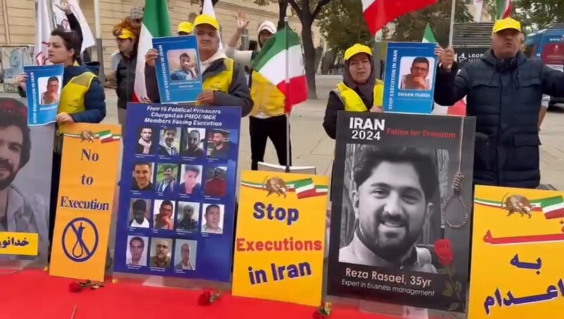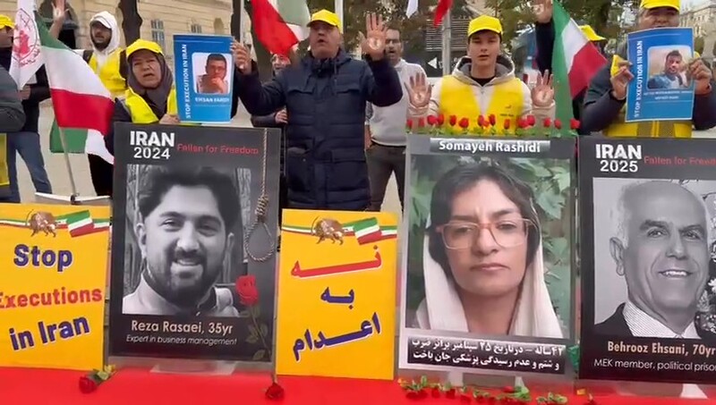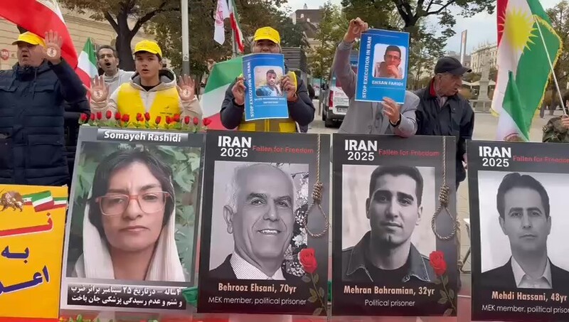 Vienna, Austria – October 11, 2025 — Supporters of the People’s Mojahedin Organization of Iran (PMOI/MEK) gathered in Vienna to mark the World Day Against the Death Penalty. The demonstrators condemned the Iranian regime’s ongoing executions and called for the immediate abolition of the death penalty, the release of all political prisoners, and urgent international action to prevent imminent executions.