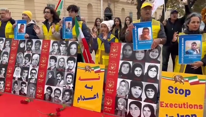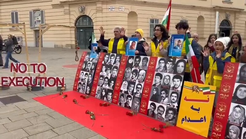 Protesters specifically called attention to political prisoners Mohammad Javad Vafaei-Sani and Ehsan Faridi, who face imminent death sentences, along with 15 other MEK supporters at risk of execution. Demonstrators urged the United Nations, the Austrian government, and the international community to act immediately to protect these prisoners. They recalled the massacre of 30,000 political prisoners in the 1988 massacre in Iran by the clerical regime and, noting the continuation of executions in Iran, called for an end to the impunity of the regime’s leaders and agents and for their trial in an international court for crimes against humanity.