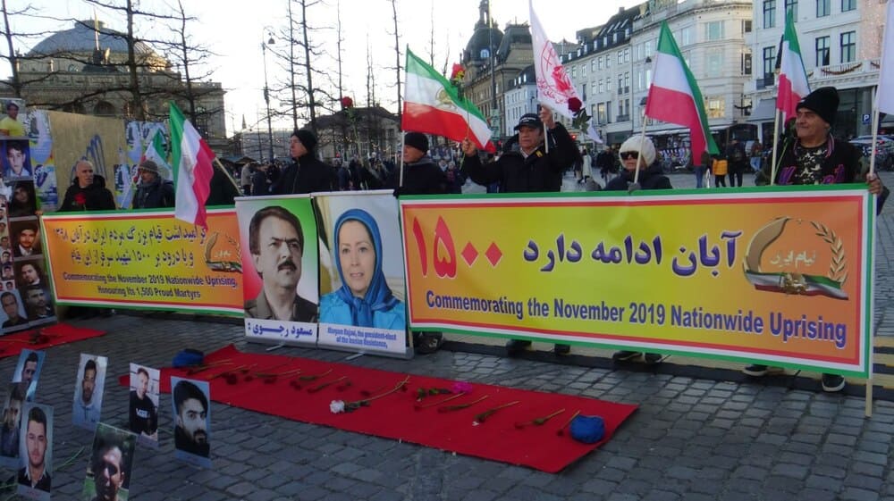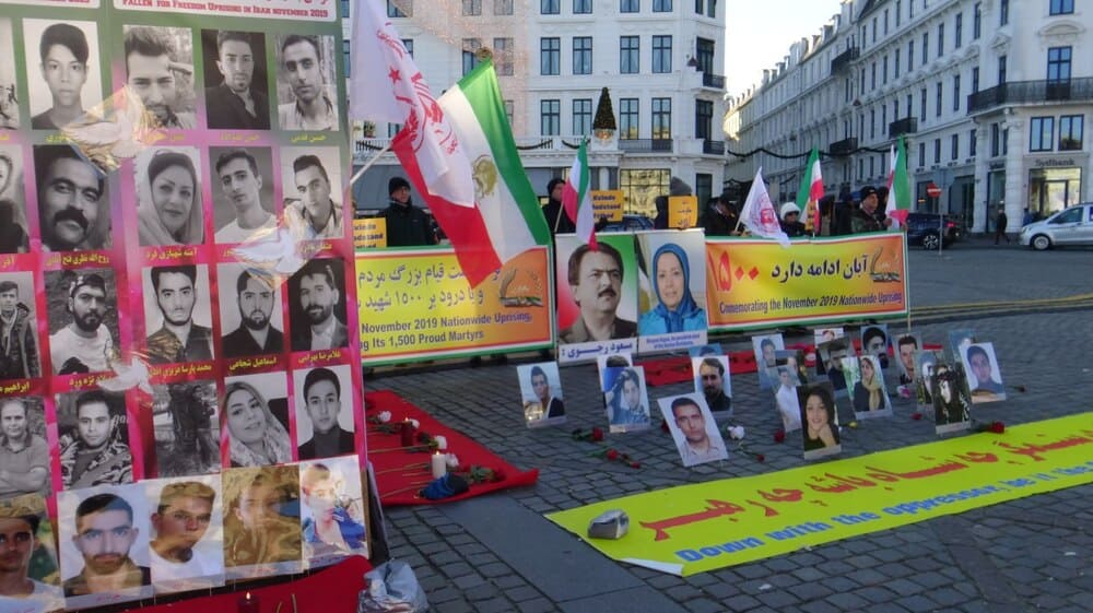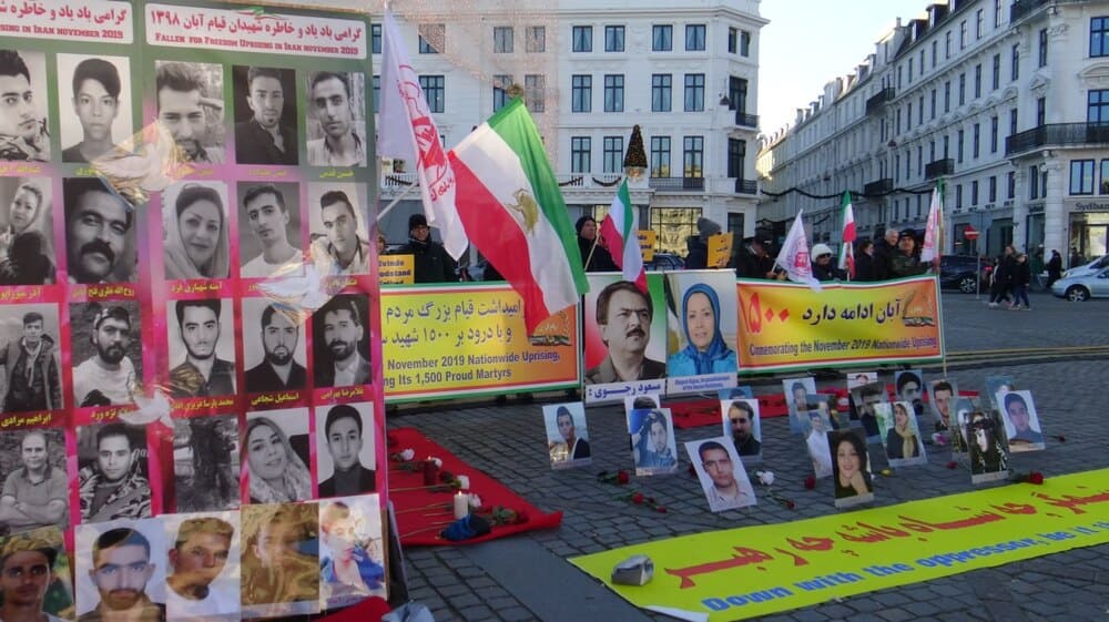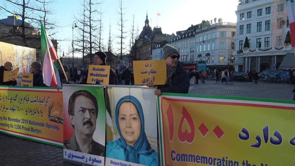 Copenhagen, Denmark — November 15, 2025: A rally and exhibition were held in Copenhagen by supporters of the People’s Mojahedin Organization of Iran (PMOI/MEK) to honor the 1500 martyrs of the nationwide November 2019 (Aban 98) uprising, the 2022 protests, and political prisoners—especially those executed this year or facing imminent execution.