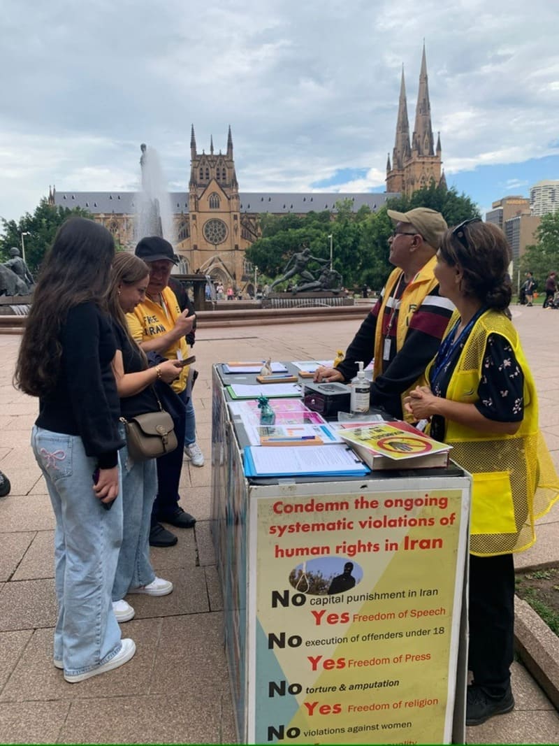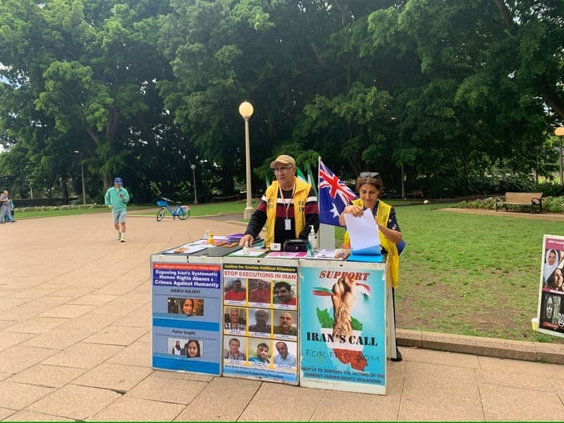 Australian citizens visiting the photo exhibition expressed solidarity with the Iranian people, supporting their struggle against dictatorship, demanding the abolition of executions, and advocating for human rights and democracy in Iran.