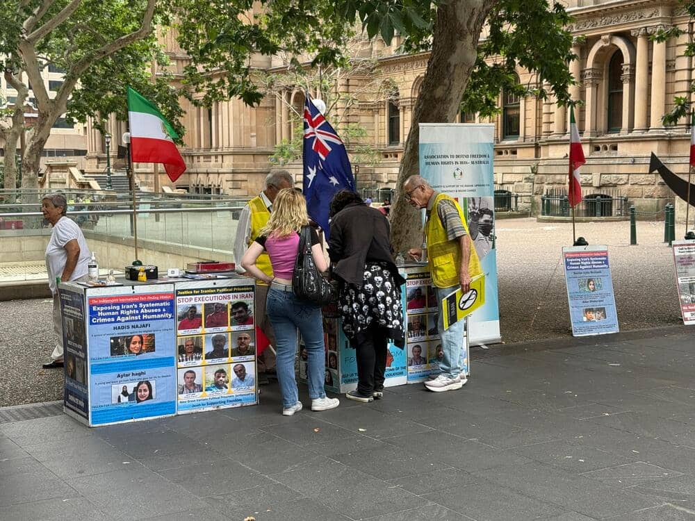 Australian citizens visiting the photo exhibition expressed solidarity with the Iranian people, supporting their struggle against dictatorship, demanding the abolition of executions, and advocating for human rights and democracy in Iran.