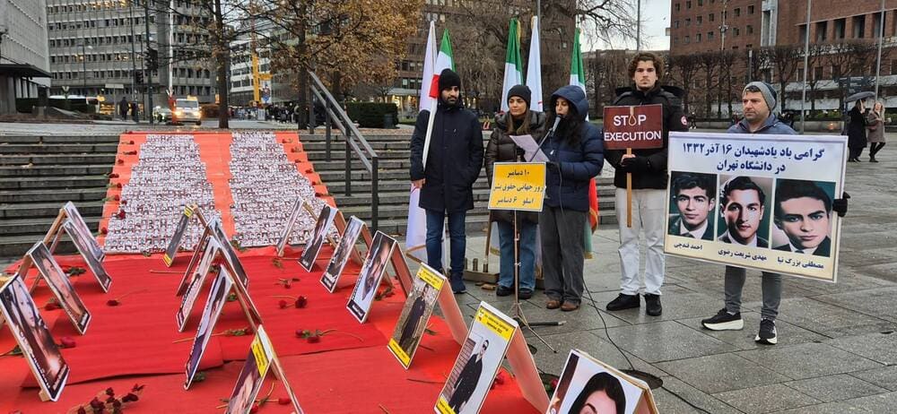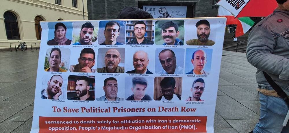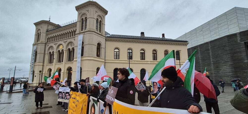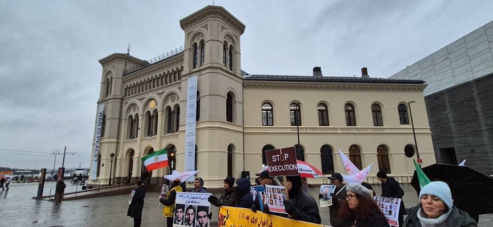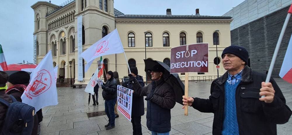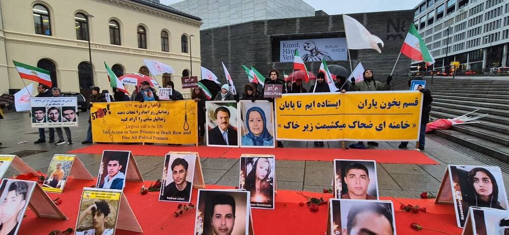 Oslo, Norway – December 6, 2025: Supporters of the People’s Mojahedin Organization of Iran (PMOI/MEK) held a rally and photo exhibition outside the Nobel Peace Center to commemorate Student Day and condemn the surge in executions carried out by the ruling regime in Iran. Freedom-loving Iranians also protested the regime’s escalating use of the death penalty — particularly against political prisoners — and the event expressed strong support for the growing “No to Execution” campaign.