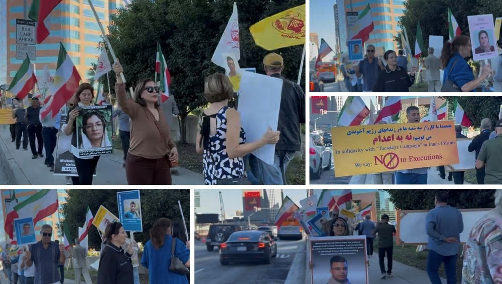 Los Angeles, California — December 9, 2025: Members of the Iranian community in Los Angeles who support the People’s Mojahedin Organization of Iran (PMOI/MEK) held a rally on the eve of Human Rights Day to protest the regime’s executions and to call for fundamental political change in Iran.