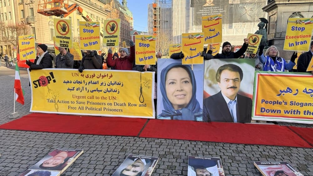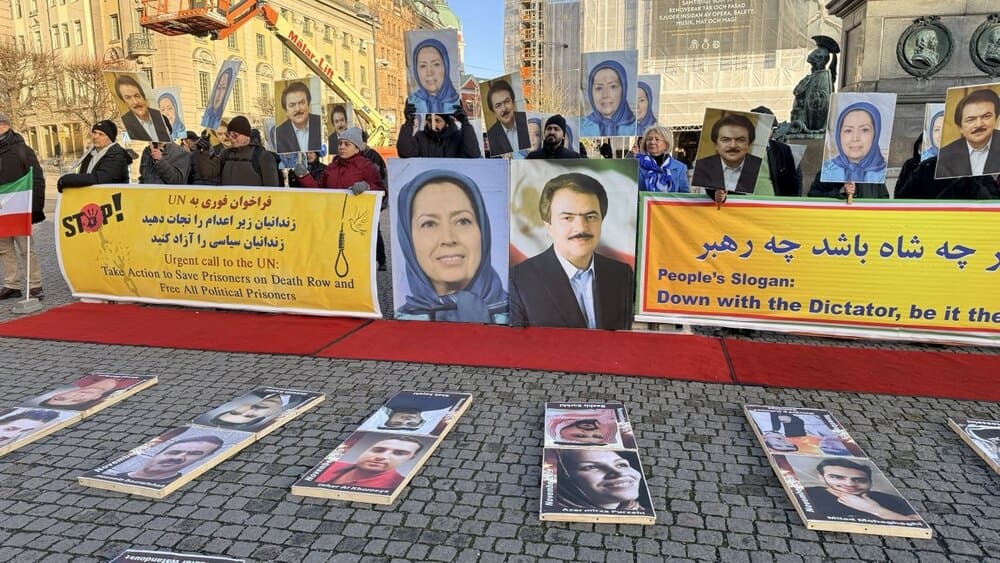 Stockholm, Sweden – November 29, 2025 – Supporters of the People’s Mojahedin Organization of Iran (PMOI/MEK) gathered in front of the Swedish Ministry of Foreign Affairs to protest the Iranian regime’s escalating use of the death penalty, particularly targeting political prisoners. Participants emphasized the leading role of Iranian women in the organized resistance movement, rallying under the slogan “Woman, Resistance, Freedom.”