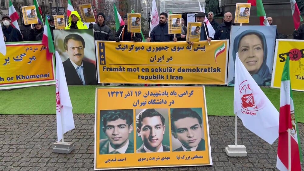 Stockholm, Sweden – December 6, 2025 – Supporters of the People’s Mojahedin Organization of Iran (PMOI/MEK) gathered in front of the Swedish Ministry of Foreign Affairs to commemorate Student Day and condemn the surge in executions carried out by the ruling regime in Iran. Freedom-loving Iranians also protested the regime’s escalating use of the death penalty — particularly against political prisoners — and the event expressed strong support for the growing “No to Execution” campaign.