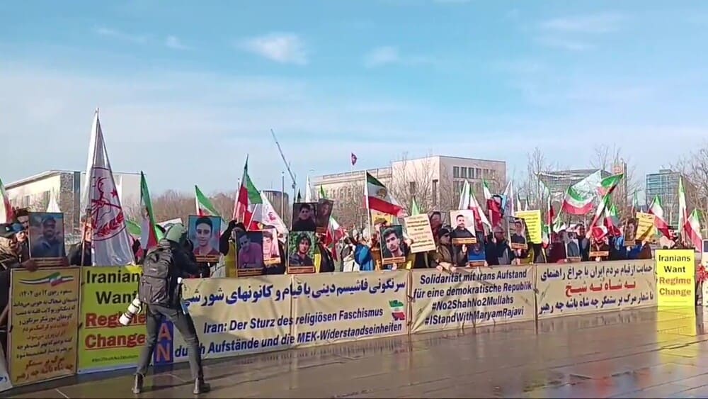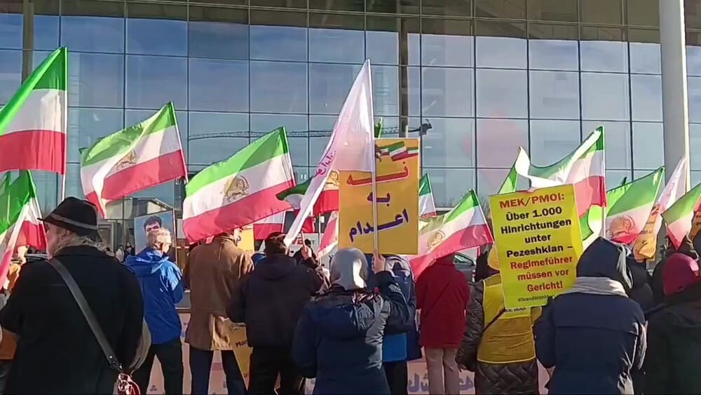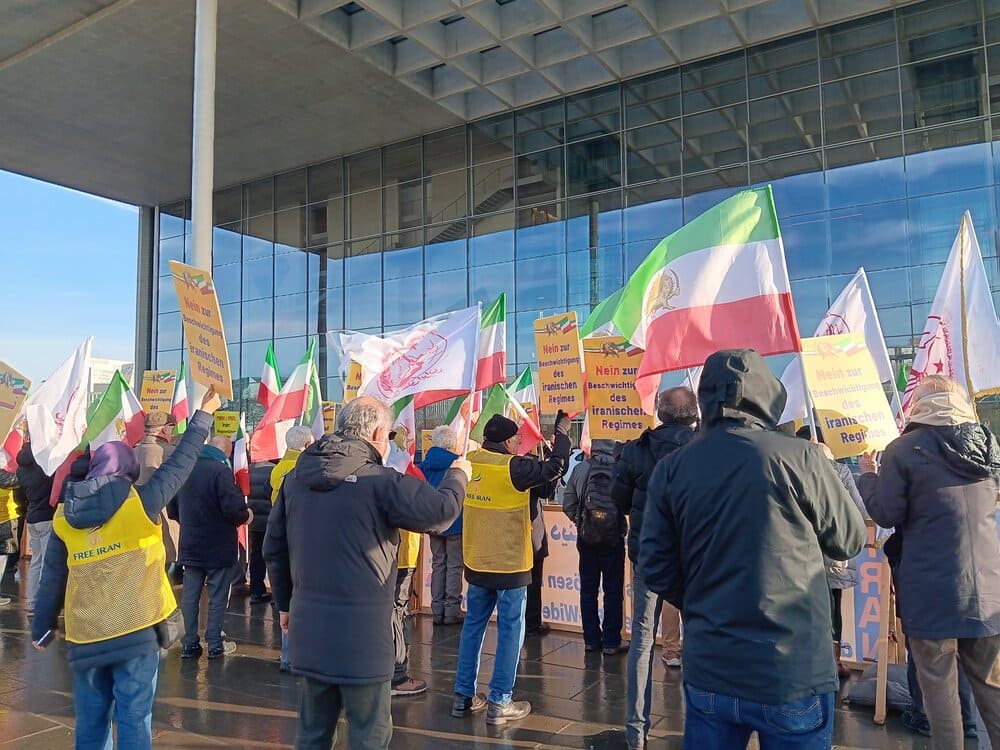 Demonstrators condemned the ongoing massacre of protesters and political prisoners in Iran, demanding the immediate release of detainees. They urged the German government and the European Union to designate the Islamic Revolutionary Guard Corps (IRGC) as a terrorist organization, impose sanctions on the regime’s perpetrators, and support the Iranian people’s legitimate resistance by referring the clerical regime’s crimes to the International Criminal Court (ICC).