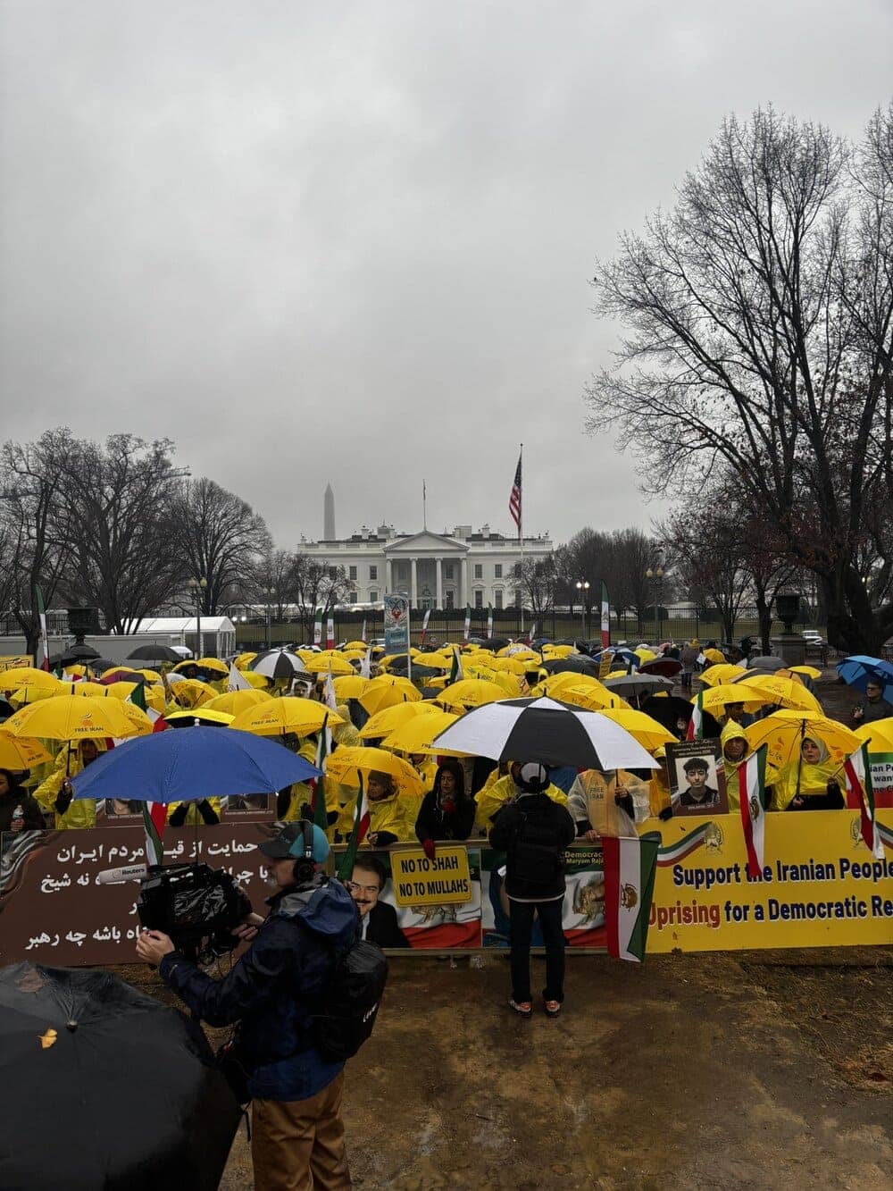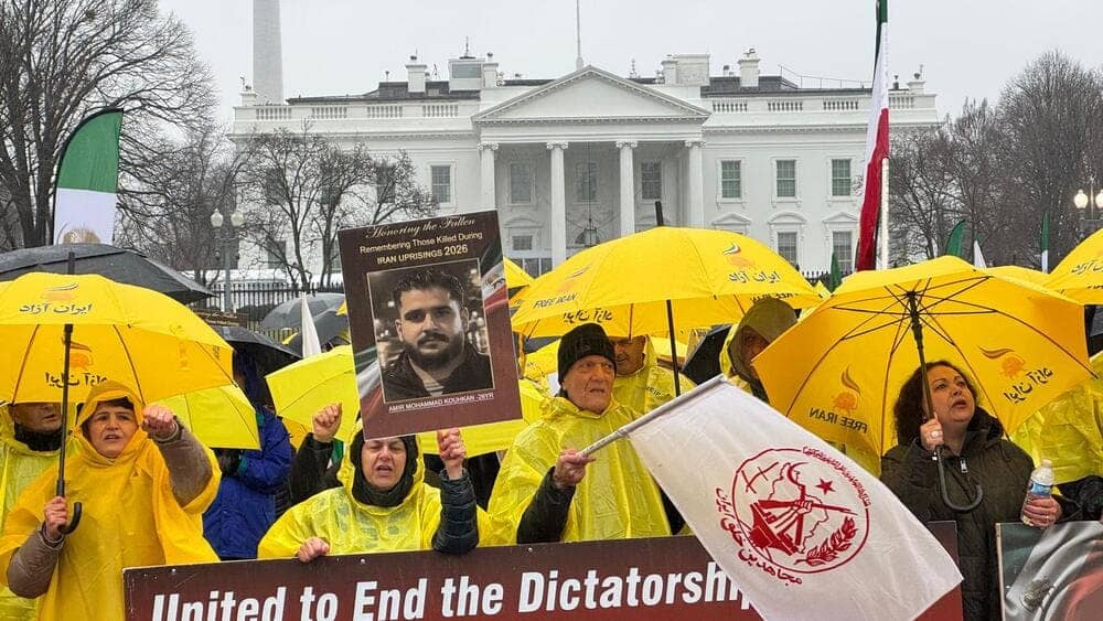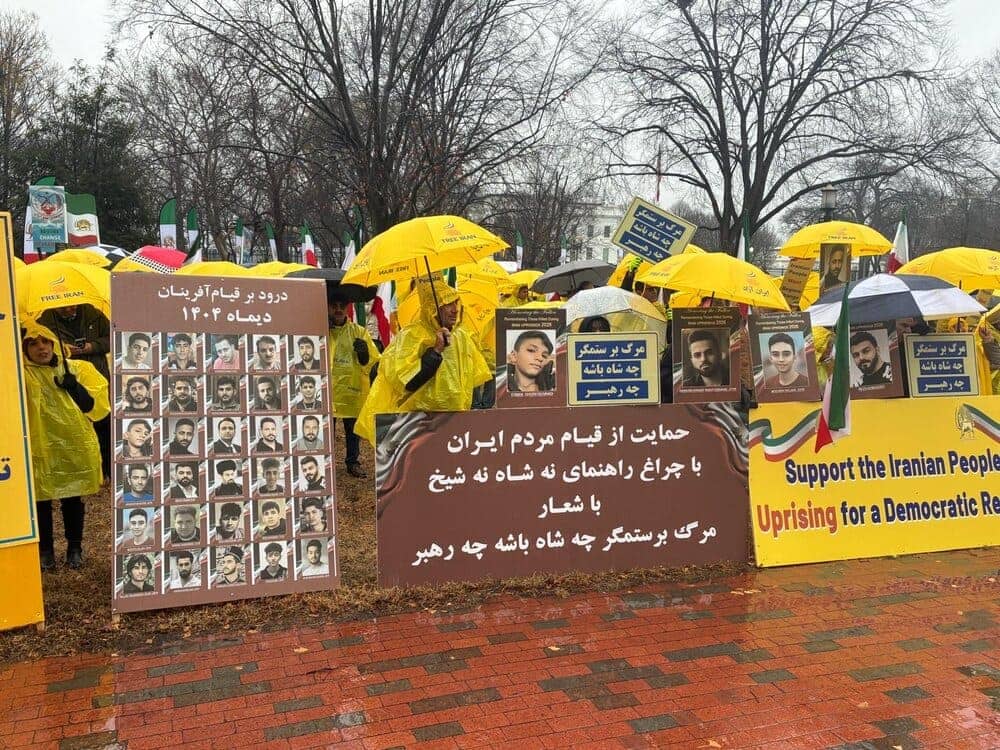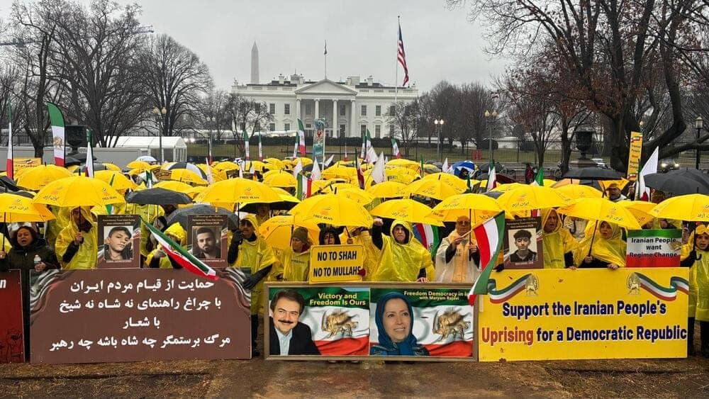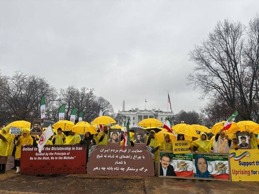 On January 10, 2026, Iranian Americans and freedom-loving Iranians gathered in front of the White House in Washington, D.C., to show solidarity with the ongoing nationwide protests in Iran. Despite the cold and rainy weather, participants—supporters of the People’s Mojahedin Organization of Iran (PMOI/MEK) and the National Council of Resistance of Iran (NCRI)—chanted anti-regime slogans and called for an end to dictatorship in all its forms.