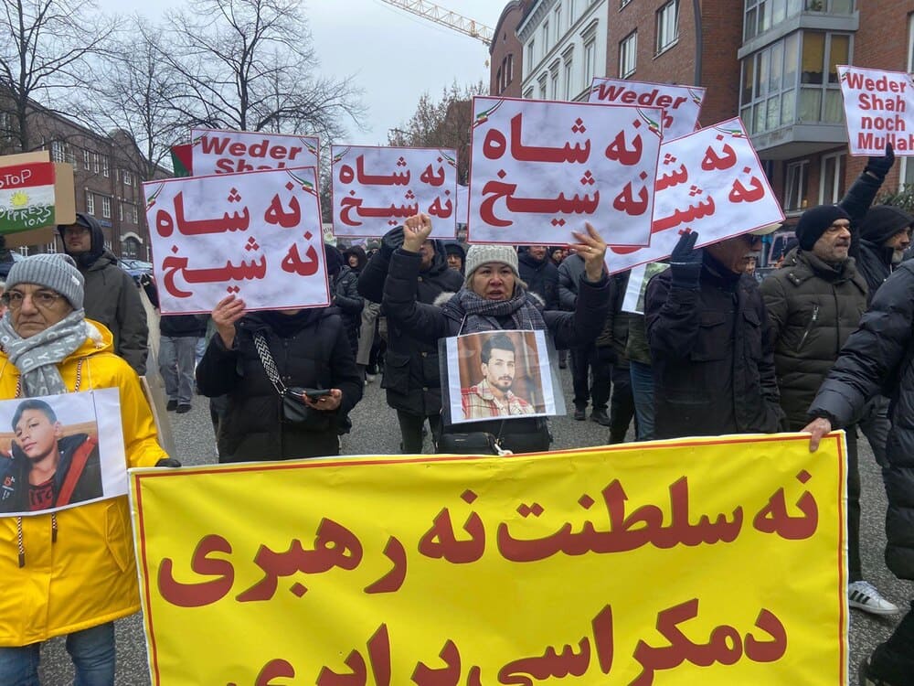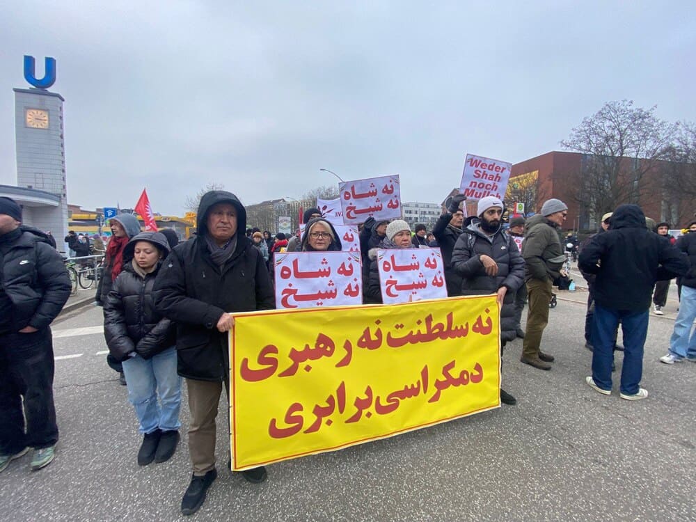Hamburg, Germany – January 24, 2026 – Freedom-loving Iranians and supporters of the Iranian Resistance participated in a demonstration in solidarity with the ongoing Iran Uprising. Participants echoed the call of their compatriots inside Iran for a free and democratic republic, rejecting all forms of dictatorship—whether monarchical or theocratic.
