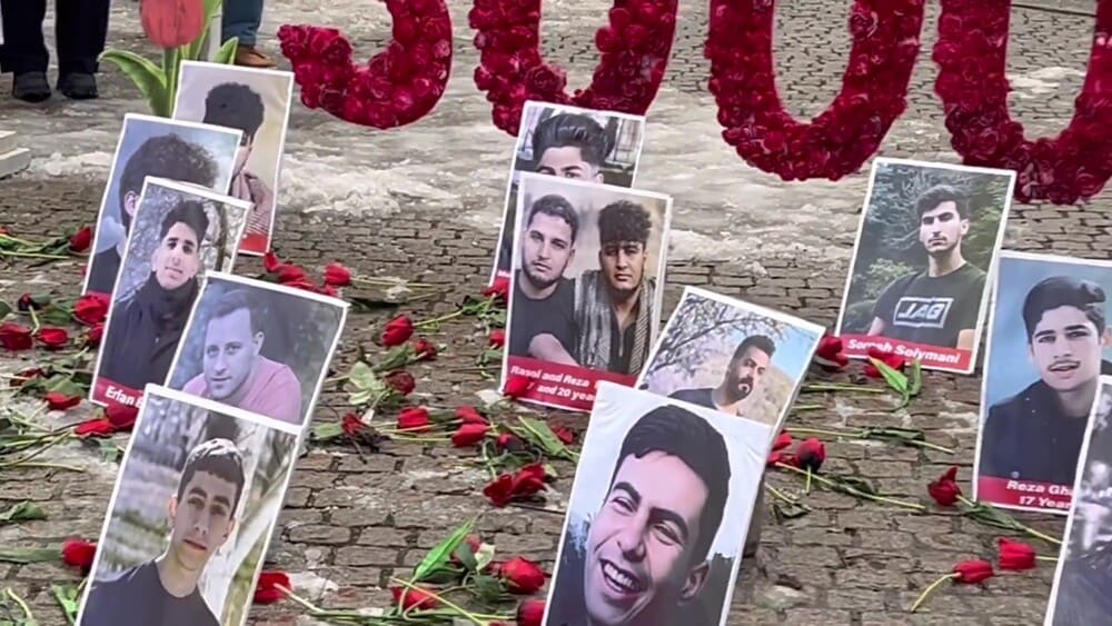 Demonstrators carried placards and portraits of those killed during the uprising, honoring the martyrs and reaffirming their commitment to the struggle for freedom and democracy. They chanted slogans such as “Regime change in Iran by the people of Iran” and “No to the Shah! No to the Mullahs!”—rejecting both the former monarchical dictatorship and the current theocratic rule.