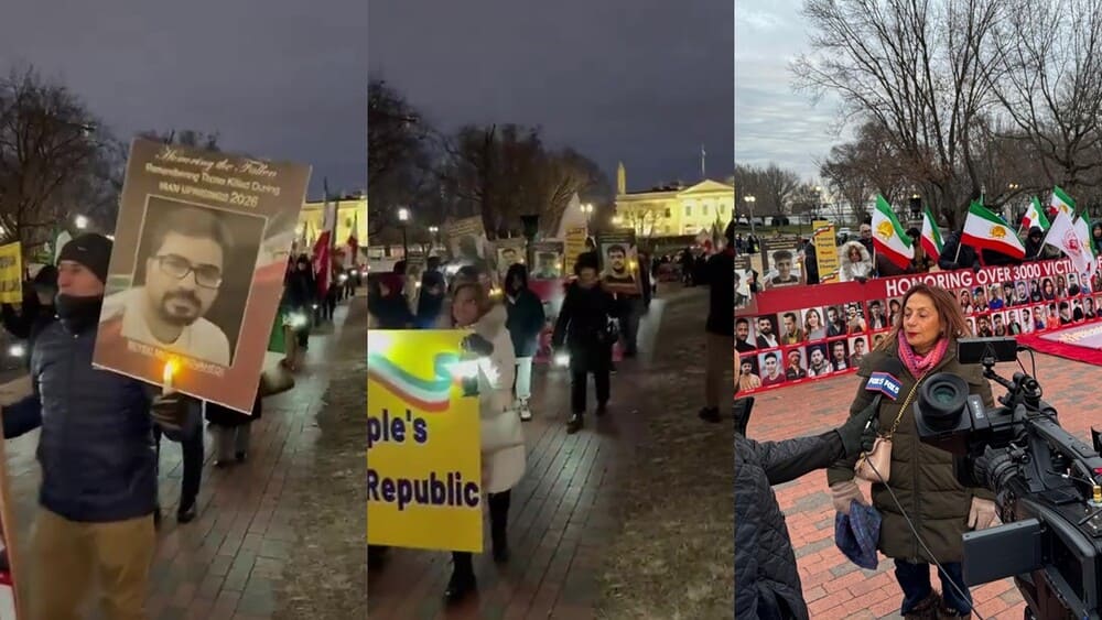 Washington, DC – January 16, 2026: On Saturday night, Iranian Americans, supporters of the Iranian Resistance gathered in front of the White House to show solidarity with the ongoing nationwide protests in Iran. The participants—supporters of the People’s Mojahedin Organization of Iran (PMOI/MEK) and the National Council of Resistance of Iran (NCRI)—chanted anti-regime slogans and called for an end to dictatorship in all its forms, demanding the immediate release of political prisoners and detainees.