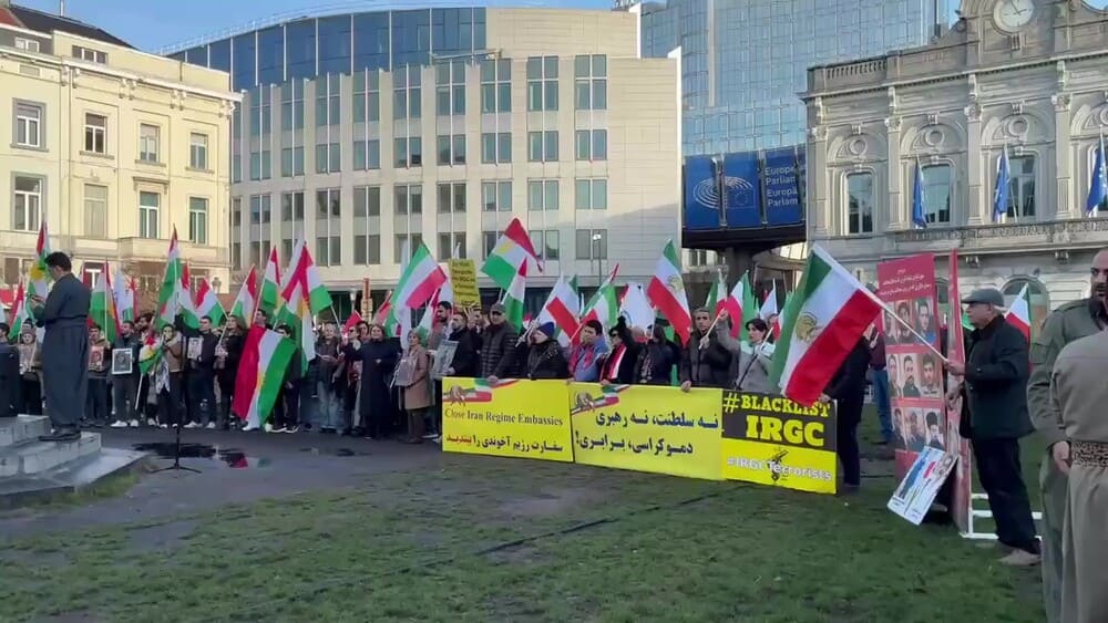 Brussels, Belgium — January 17, 2026 — Freedom-loving Iranians and supporters of the Iranian Resistance and their Kurdish compatriots held a rally in Brussels in solidarity with the nationwide protests in Iran that erupted on December 28, 2025. They called on the European Union to list the Iranian regime’s Islamic Revolutionary Guard Corps (IRGC) as a terrorist organization for its crimes against the Iranian people and its brutal suppression of protests, and to end the EU’s appeasement policy toward Tehran.