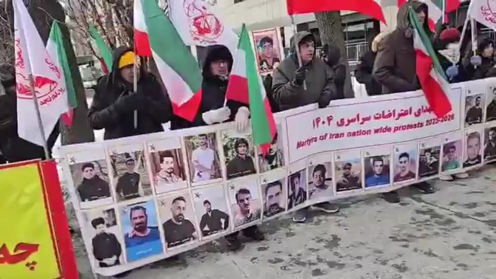 Toronto, Canada — January 17, 2026 — Supporters of the People’s Mojahedin Organization of Iran (PMOI/MEK) in Toronto held a rally in solidarity with the nationwide uprising in Iran and its brave protesters. Participants held pictures of the martyrs of the ongoing nationwide protests and chanted anti-regime slogans to express their support for compatriots who have risen up inside Iran.