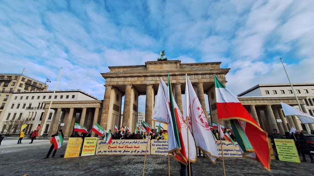 Berlin, Germany — January 10, 2026 — Once again, freedom-loving Iranians and supporters of the People’s Mojahedin Organization of Iran (PMOI/MEK) held a rally at the Brandenburg Gate in Berlin to express solidarity with the nationwide protests in Iran that began on December 28, 2025. Braving the freezing weather, participants echoed the call of their compatriots inside Iran for a free and democratic republic.