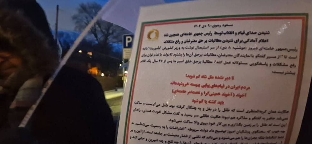 Demonstrators called for fundamental political change in Iran and the establishment of a democratic republic, emphasizing that the country’s future must be determined solely by its people. They rejected all forms of dictatorship, chanting slogans such as “regime change in Iran by the people of Iran” and and “No to the Shah! No to the Mullahs!” to underscore their opposition to both the former monarchical system and the current clerical regime.