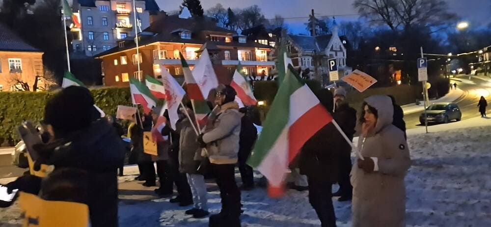 Oslo, Norway – January 1, 2026 — Supporters of the People’s Mojahedin Organization of Iran (PMOI/MEK) held a rally in front of the Iranian regime’s embassy, enduring heavy snowfall and sub-zero cold, to show solidarity with the nationwide protests in Iran that started on Sunday, December 28, 2025. The demonstrators stressed that Iranians will persist in their uprising until the downfall of the mullahs’ tyrannical regime, pledging to echo the protesters’ calls globally.