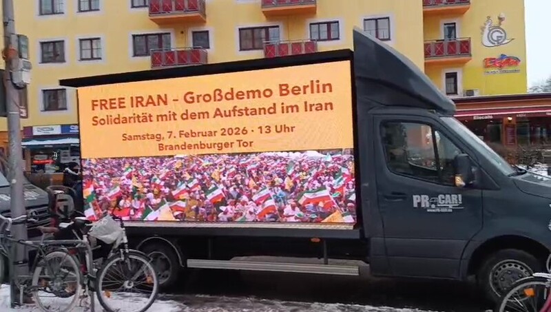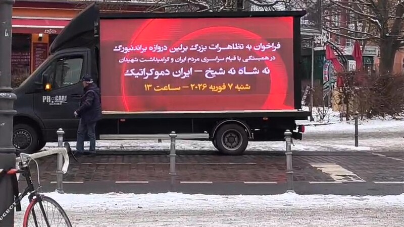 During the event, organizers not only highlighted the uprising’s goals and rejection of all forms of dictatorship but also widely promoted participation in the major demonstration on February 7, 2026, in Berlin.