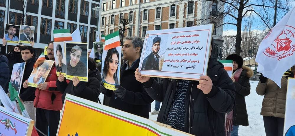 Oslo – February 21, 2026: Supporters of the Iranian Resistance gathered outside the Norwegian Foreign Ministry to honor the martyrs of Iran’s nationwide uprising and express strong solidarity with protesters demanding freedom and democracy. The event, held on the 40th day after the killings of protesters, aimed to honor the fallen and demand justice.