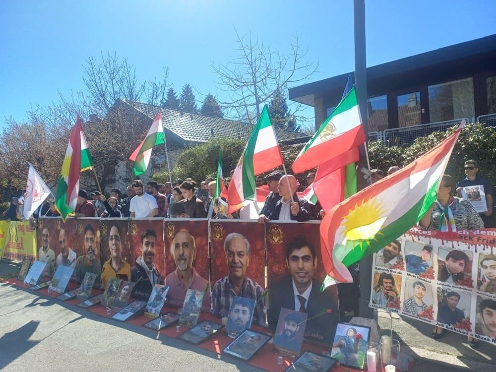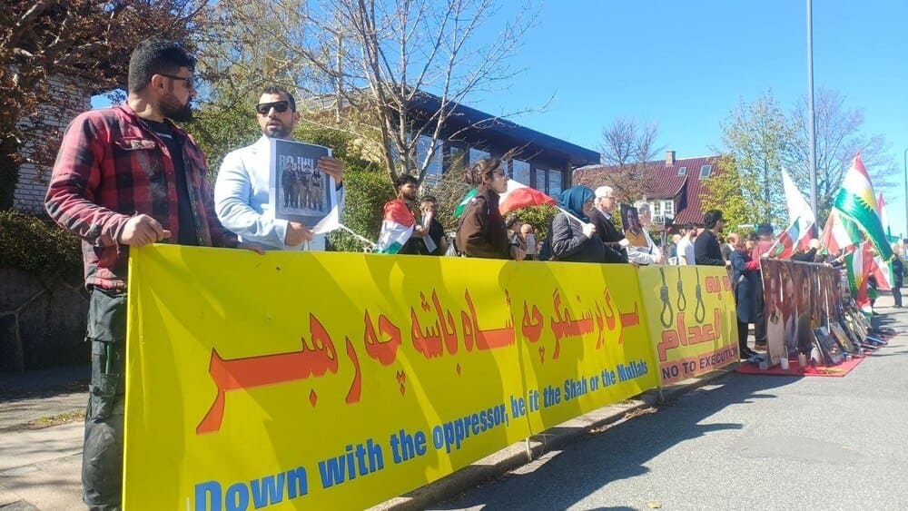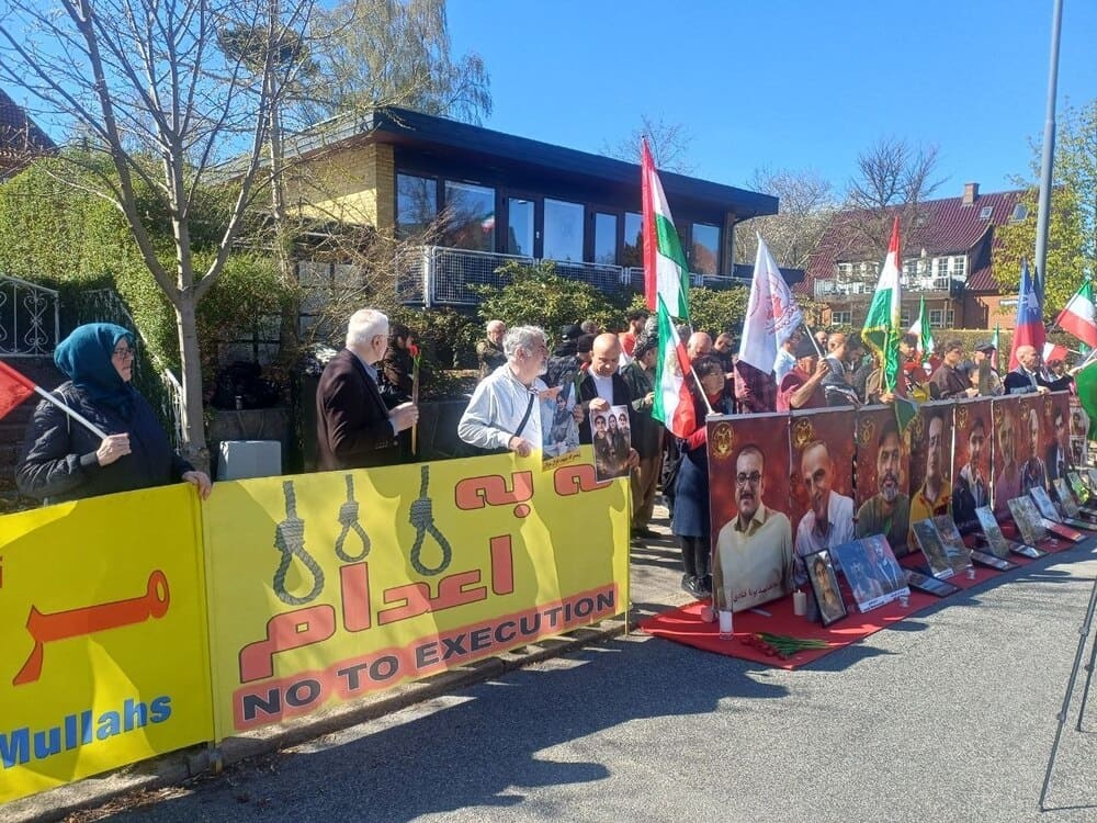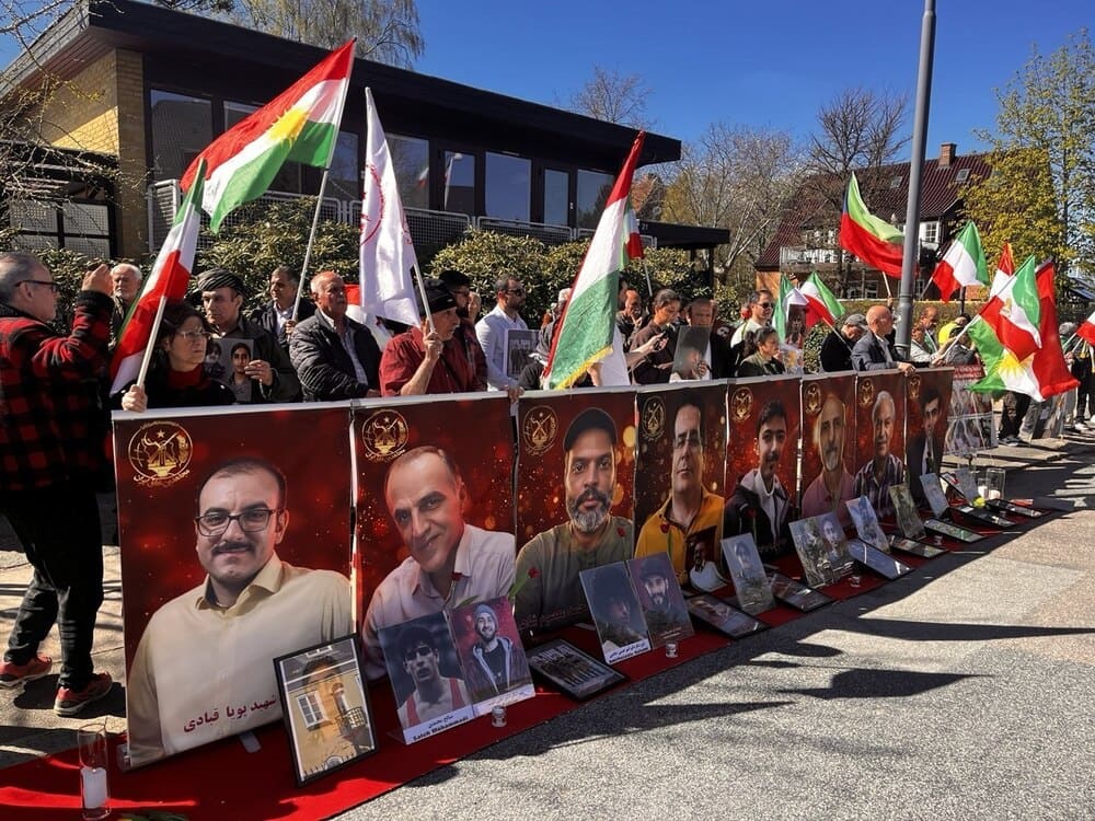 Copenhagen, Denmark – April 25, 2026: Supporters of the Iranian Resistance, including PMOI/MEK supporters as well as Kurdish, Baluch, and other Iranian communities, held a protest rally outside the Iranian regime’s embassy in Copenhagen. The demonstrators condemned the IRGC’s terrorist attacks on Iranian Kurdish parties and denounced the execution of political prisoners in Iran.