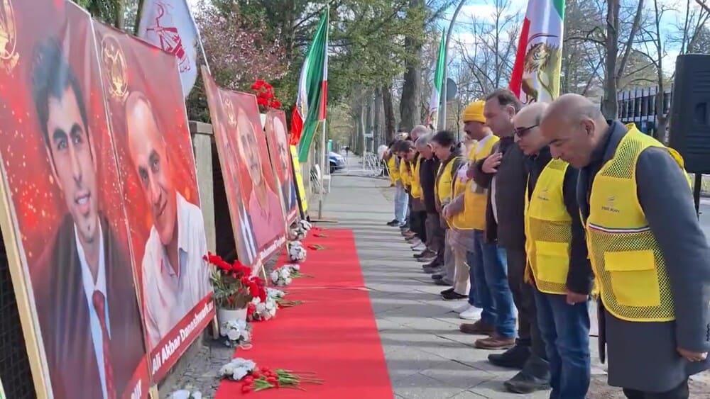 Berlin, Germany – April 7, 2026 — Supporters of the Iranian Resistance organized a rally outside the Iranian regime’s embassy in Berlin to protest the execution of six political prisoners affiliated with the People’s Mojahedin Organization of Iran (PMOI/MEK): Mohammad Taghavi, Akbar Daneshvar Kar, Babak Alipour, Pouya GhobadiVahid Bani-Amerian, and Abolhassan Montazer.