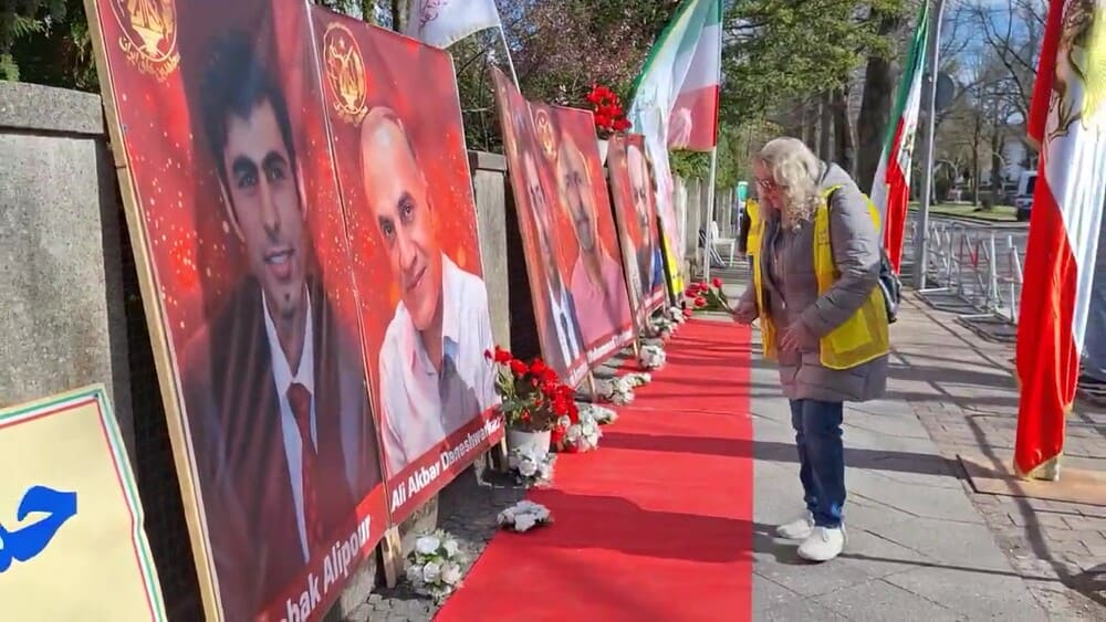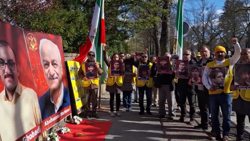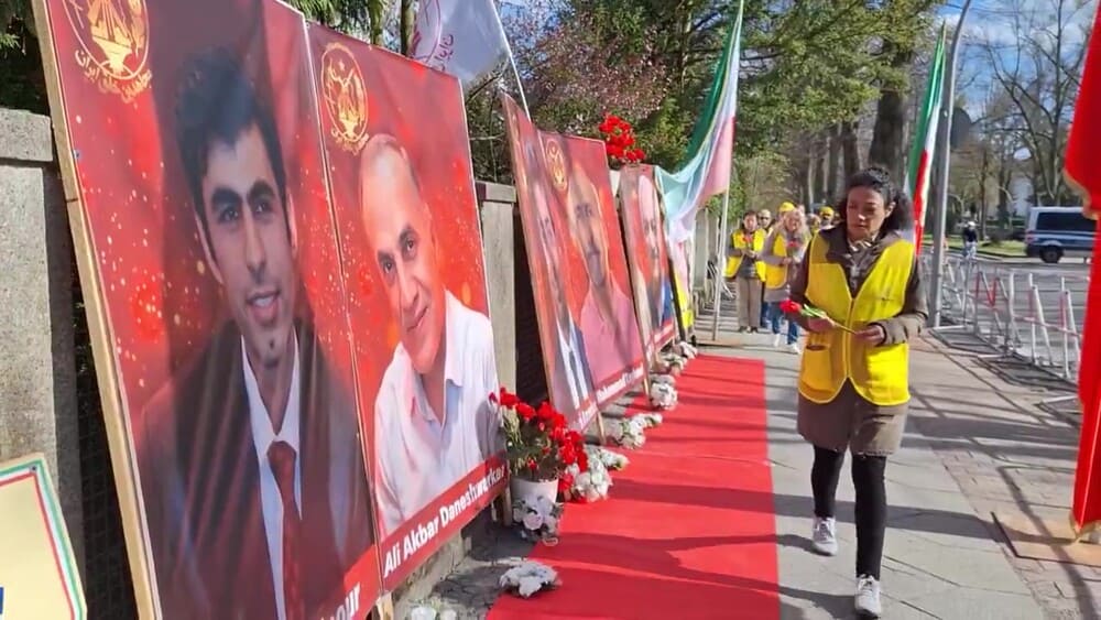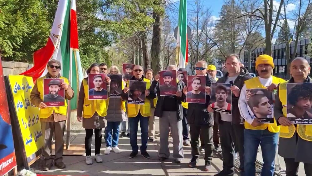 Berlin, Germany – April 7, 2026 — Supporters of the Iranian Resistance organized a rally outside the Iranian regime’s embassy in Berlin to protest the execution of six political prisoners affiliated with the People’s Mojahedin Organization of Iran (PMOI/MEK): Mohammad Taghavi, Akbar Daneshvar Kar, Babak Alipour, Pouya GhobadiVahid Bani-Amerian, and Abolhassan Montazer.