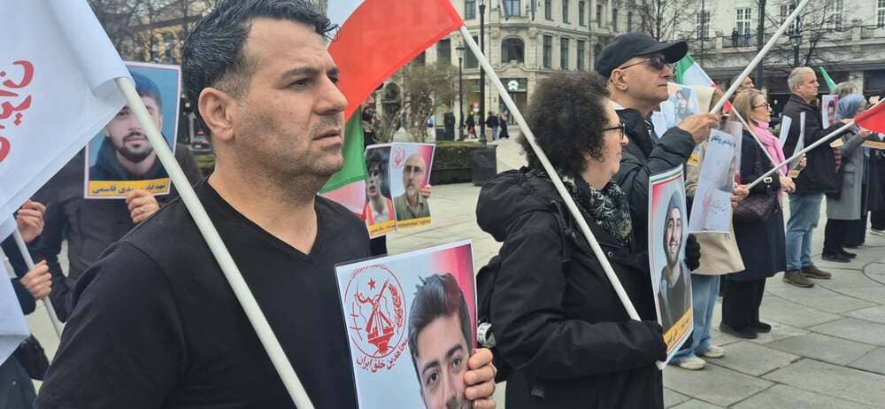 Oslo, Norway – April 18, 2026: Supporters of the Iranian Resistance have been rallying for several consecutive weeks outside the Iranian regime’s embassy in Oslo, protesting the execution of PMOI political prisoners.
