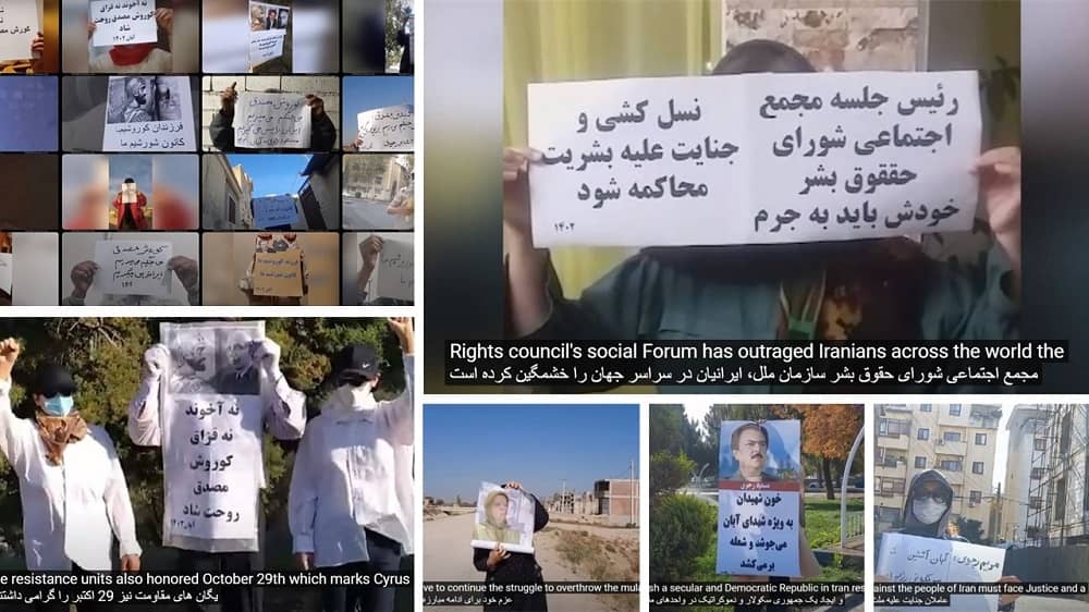 Members of Resistance Units, a network of activists inside Iran supporting the People’s Mojahedin Organization of Iran (PMOI/MEK), voiced their protest to the appointment of Iran’s regime at the head of UNHRC Social Forum.