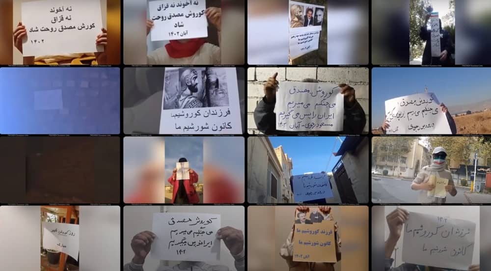 In Tehran, the Resistance Units held placards with messages of protest. “Have some shame in face of the 1,500 martyrs of November 2019 protests and 750 martyrs of the 2022 uprising,” one of the placards read, referring to the brutal killing of protesters in recent uprisings.