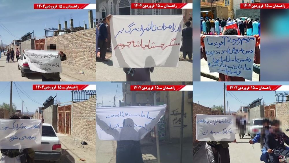 Zahedan, Baluchestan Province – April 4, 2025 — In a striking act of defiance against the regime’s brutal repression, PMOI (MEK) Resistance Units in Zahedan launched a courageous campaign, spreading large-scale banners and leaflets across public spaces, including areas near Friday prayer gatherings. These powerful displays carried revolutionary slogans that openly challenged the Iranian regime’s tight grip on one of the country’s most heavily surveilled and marginalized regions — Sistan and Baluchestan.