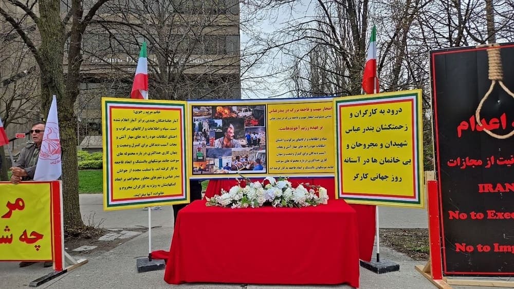 Supporters of the People’s Mojahedin Organization of Iran (PMOI/MEK) gathered in both Ottawa and Toronto to honor the victims of the recent deadly explosion in Bandar Abbas, Iran. Participants held placards, lit candles, and chanted in solidarity with the families of the workers who lost their lives, expressing deep sorrow and condemnation.