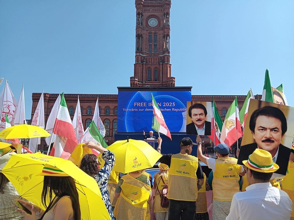 In Berlin, large crowds of freedom-seeking Iranians marched with placards and banners, chanting slogans against the ruling theocracy and rejecting the return of the deposed monarchy. Echoing the message from Mrs. Rajavi, the demonstrators voiced strong support for democratic change through the organized resistance. The atmosphere was one of clarity and resolve: Iran’s future must not revert to a previous monarchical dictatorship, nor remain under the current regime.